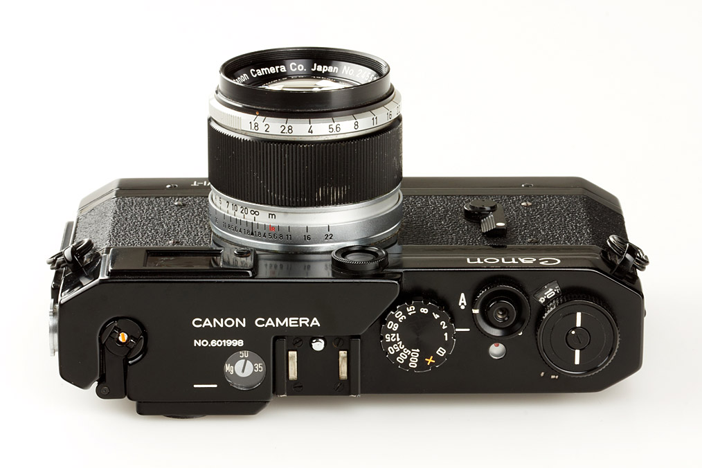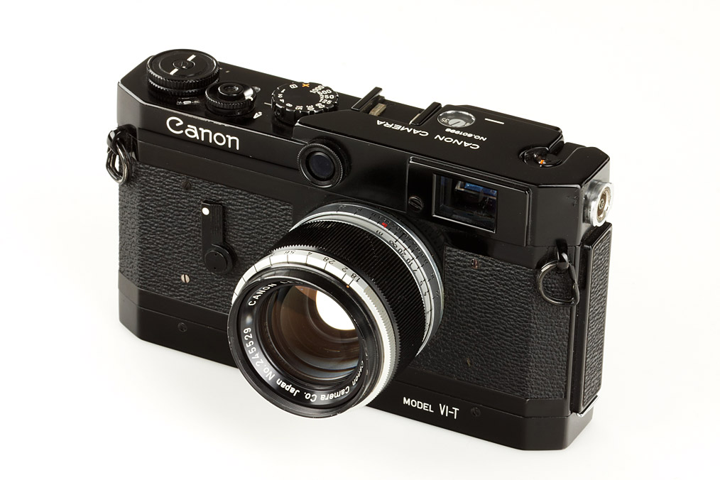 original black painted Canon with rapid wind in good working order, Canon Lens 1.8/50mm no.245529, original Canon VI-T everready case mint in maker's box