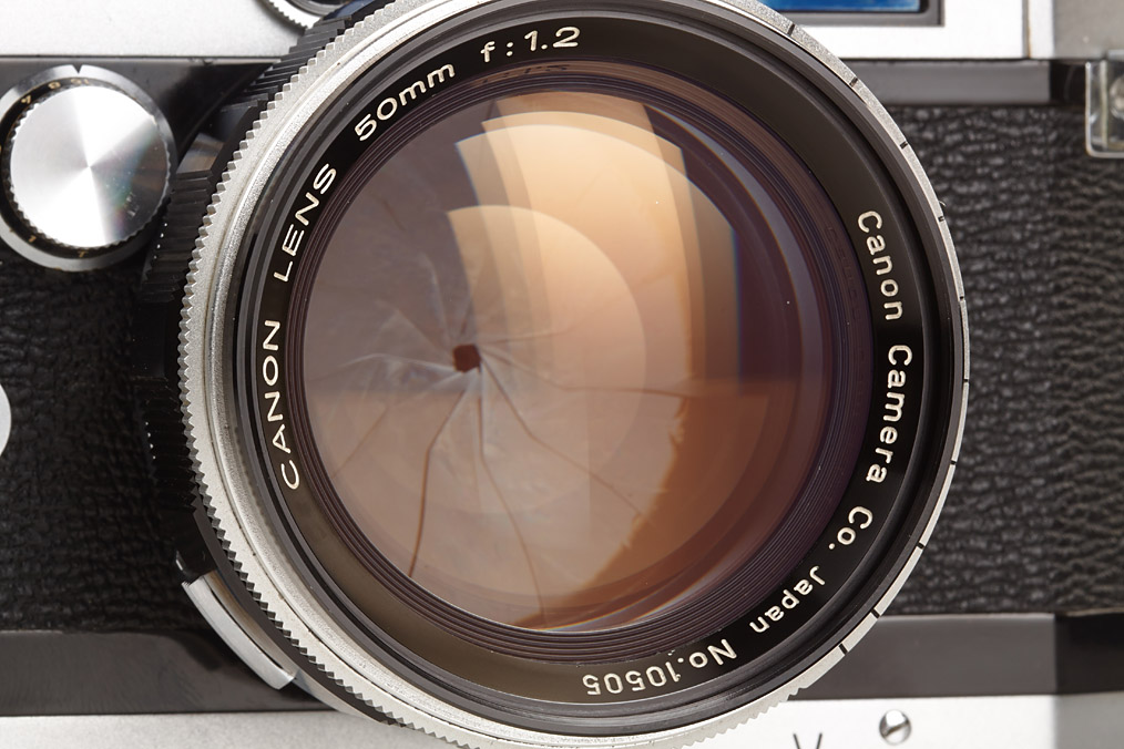 in fine condition with rapid winder (slow speeds not accurate), fast Canon Lens 1.2/50mm no.10505 (cap)