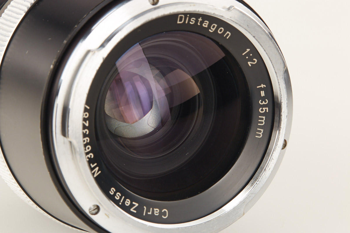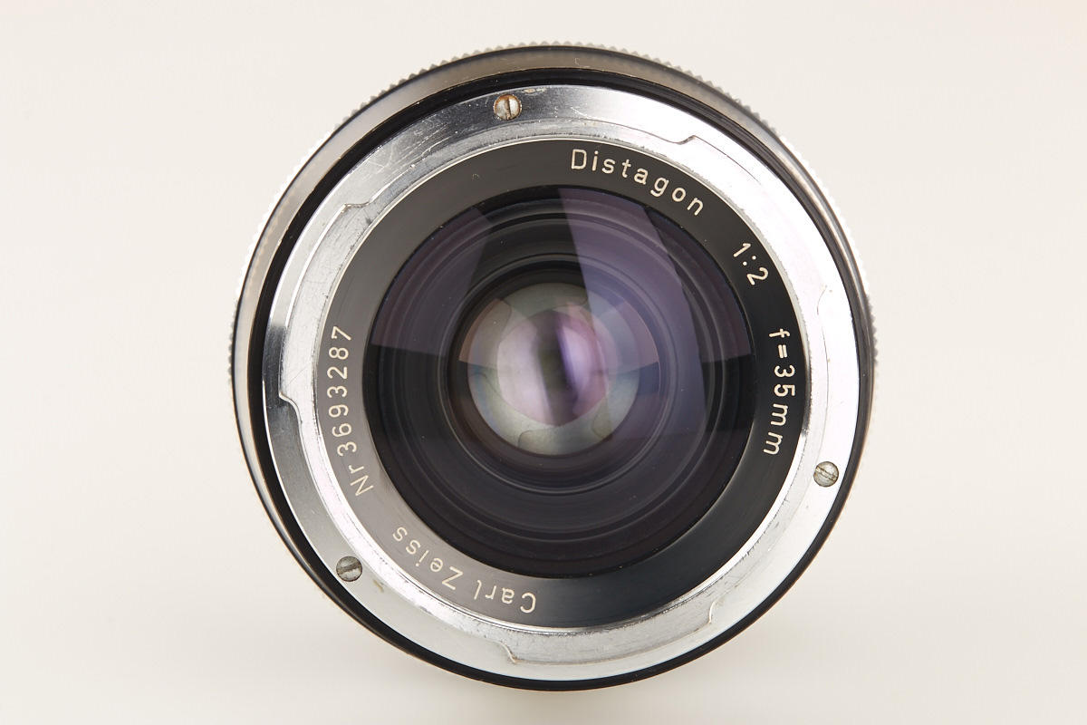 two Contarex lenses in very good condition: (1) black Distagon 2/35mm no.3693287 (good lenses, rear cap, filter), (2) black Flash Planar 2/50mm no.4072205 (god lenses, B56 UV filter)