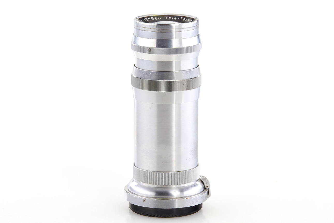 chrome Tele-Tessar K in very fine condition with clean lenses, rare tripod holder 541/30, both caps
