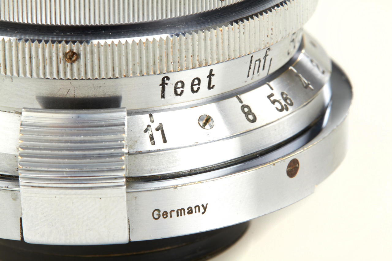One of the most rare Contax lenses (only 250 pieces produced) in fine condition, feet scale, both original caps, made within the first batch of 150 lenses (2217201-2217350). This lens is one of the first fast wide angle lenses lenses built for 35mm cameras.