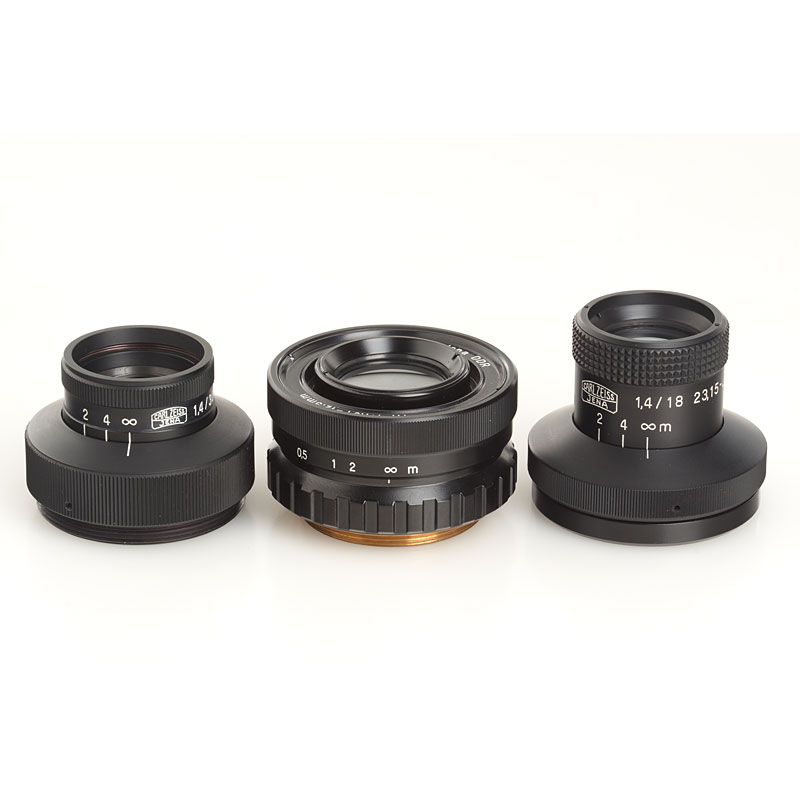 very rare set of 5 lenses produced by Zeiss Jena for the East-German Secret Service STASI: (1) 1.0/12.5mm no.804-1262 (cap, keeper), (2) focusing 1.4/18mm no.804-1021 (rear cap, keeper), (3) focusing 1.4/30mm no.804-1107 (keeper), (4) focusing 1.8/68mm no.804-0299 (caps, keeper), (5) focusing 1.2/68mm no.804-0925 - all in mint condition with special 44mm thread mount (5)