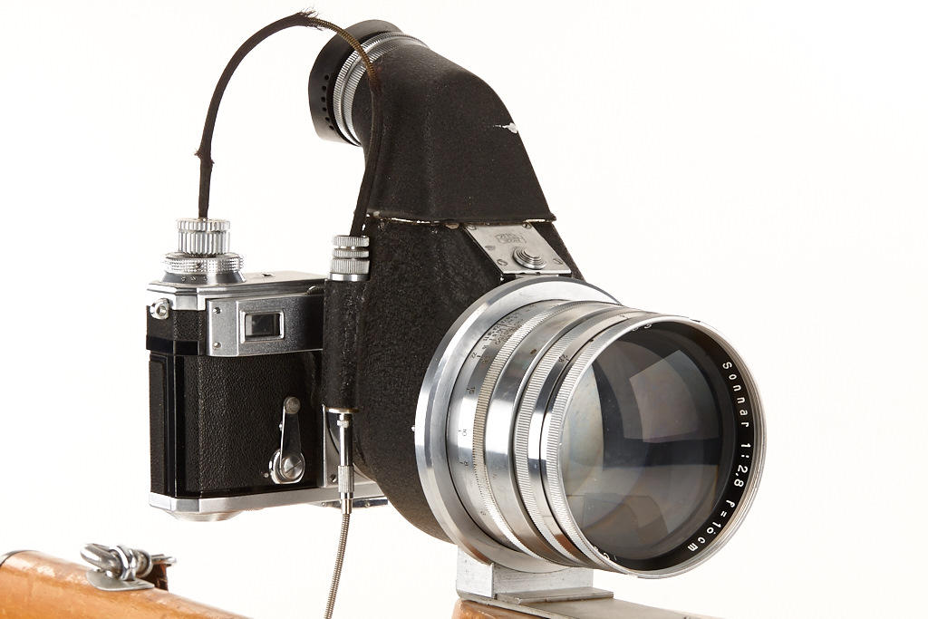 The Zeiss Ikon rifle stock 543/75 was developed for the Olympic games 1936 in Germany by the famous sports photographer Lothar Rübelt, it is one of the most rare accessories for Contax, only very few are known to exist - it comes with a matching chrome Sonnar 2.8/18cm no.1844985 (1937) in with Zeiss Ikon reflex housing 543/78 with hood, cable release, strap, Contax II no. M.32485 - all in very good condition, see: Kuc - Auf den Spuren der Contax, volume I, page 200