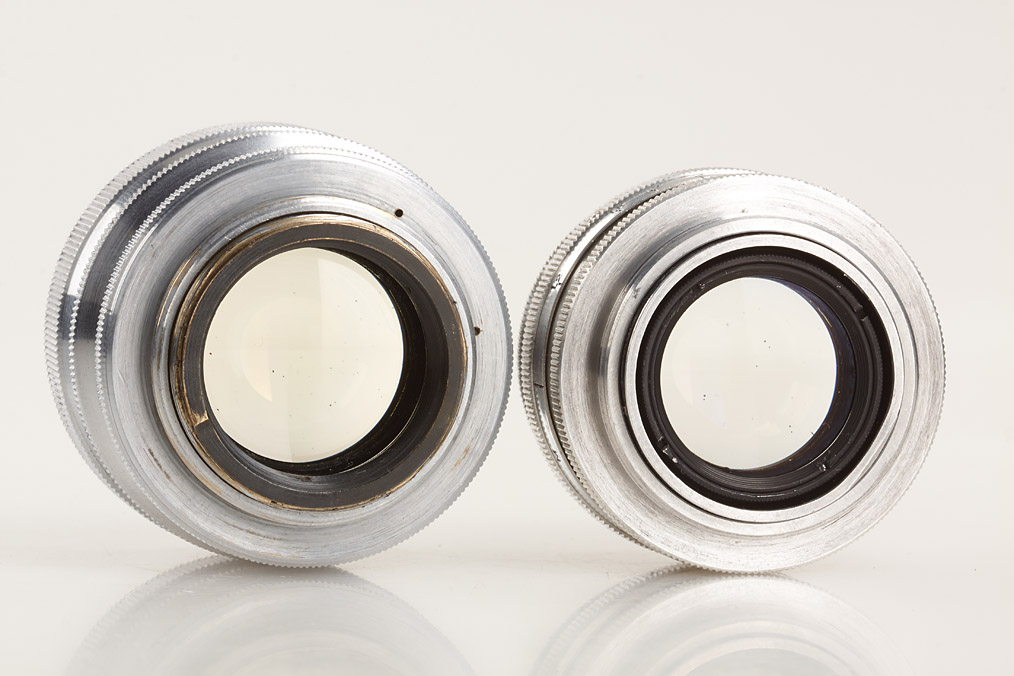 Sonnar 1.5/5cm no.2725655 in original RF coupled M39 screw mount (cleaning marks on rear element, cap), Sonnar 1.5/6cm no.3112884 T in RF coupled M39 screw mount (2)