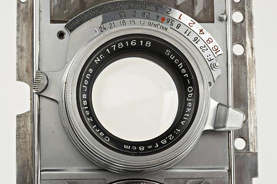 standard lens for TLR Contaflex in excellent condition, also: complete lensboard for Contaflex with viewing lens 2.8/8cm no.1781618 (condition B)