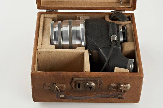 for Contax, chrome Olympia-Sonnar with Flektoskop 543/70 (with matching lens number) no.W91205, cable release, rear cap, eye-cup, original case