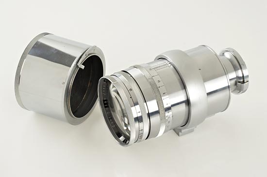 for Contax, very rare version with direct mount, rangefinder coupled, without finder shoe, in top condition, original hood with bayonet mount