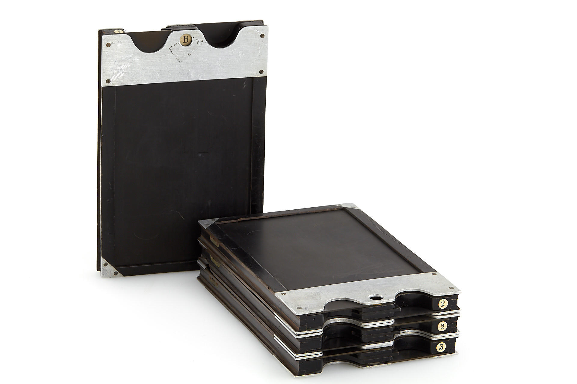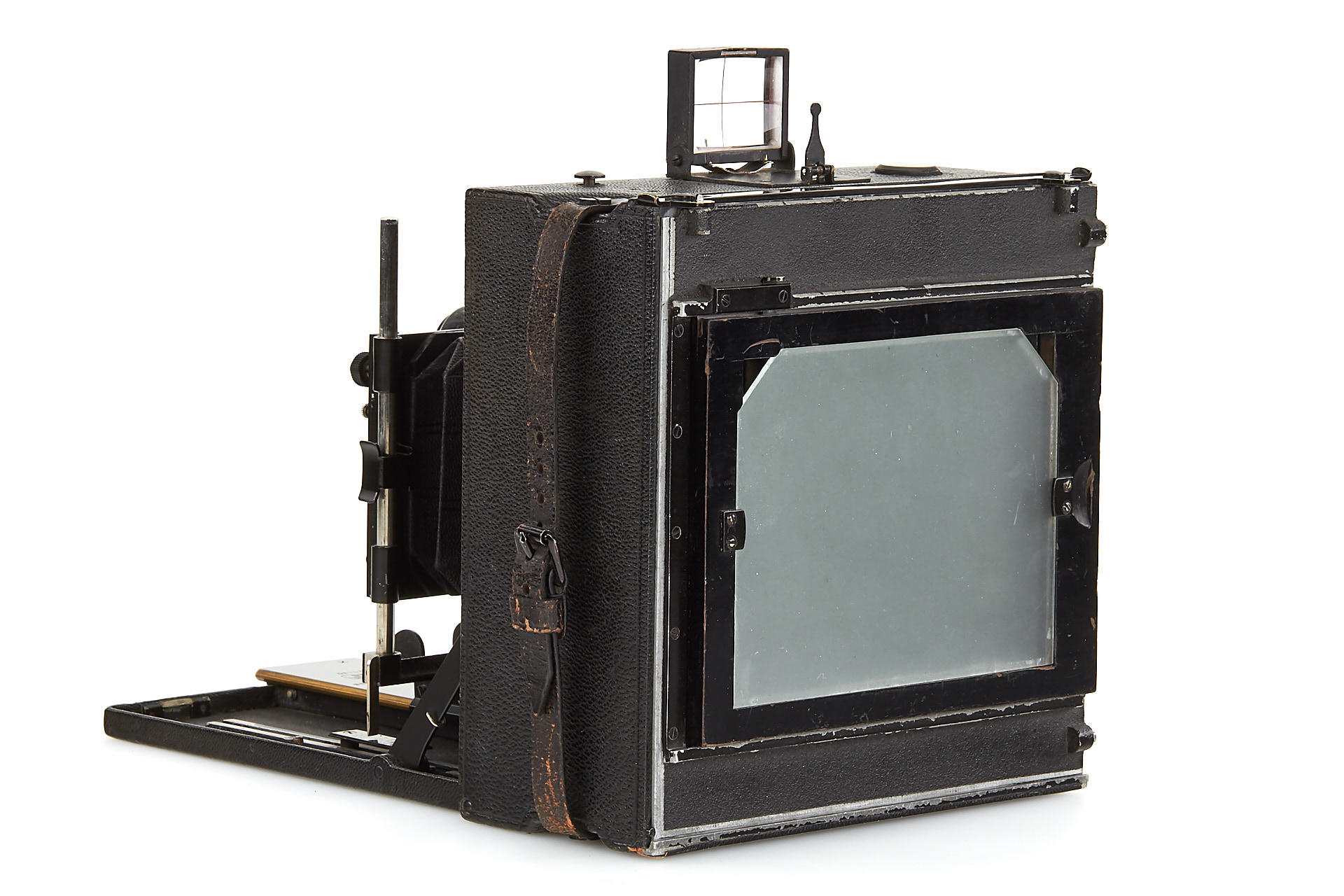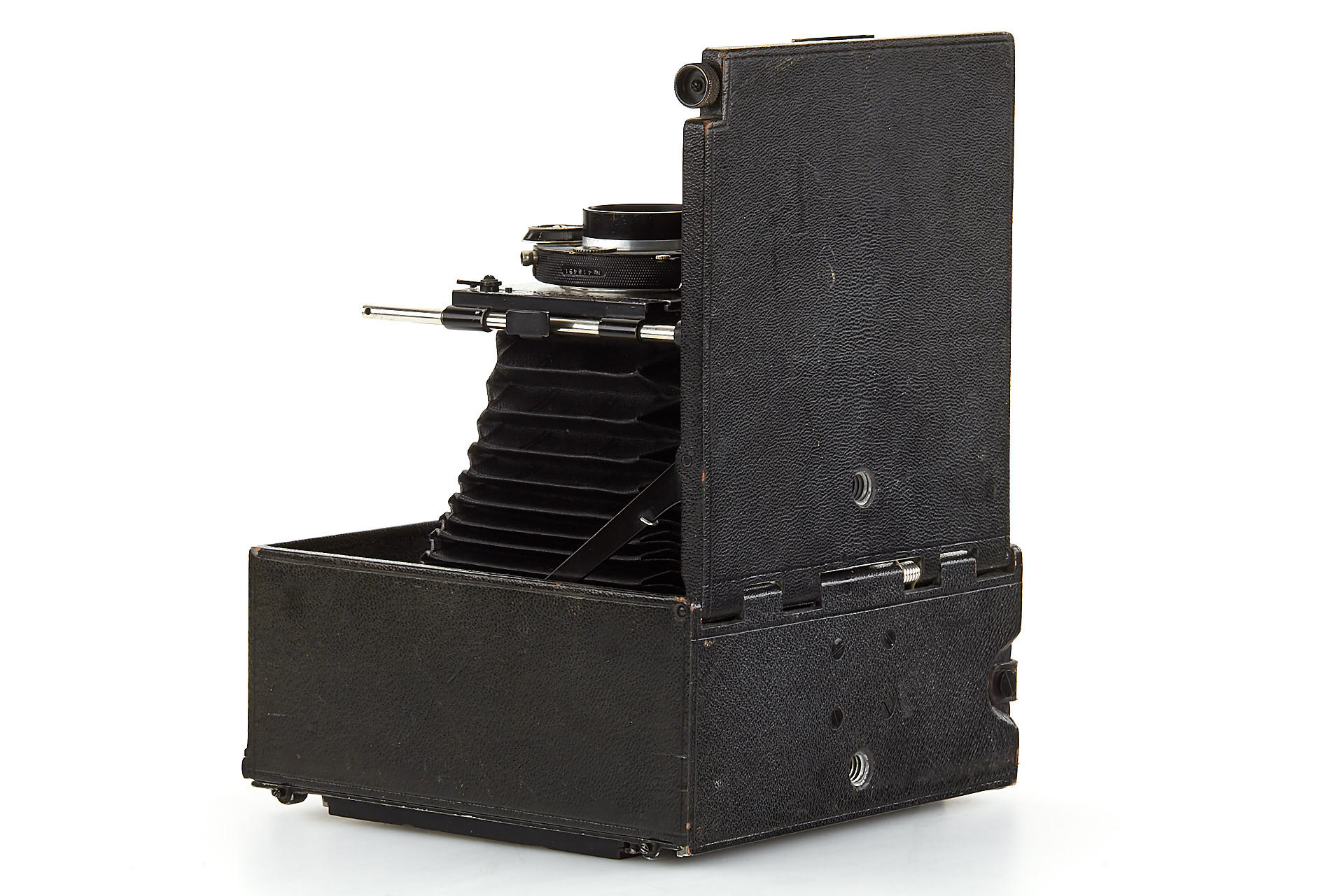 a very rare folding-bed camera in excellent condition, leather-covered aluminium body, removable back for portrait or landscape orientation, with unique Protarlinse 29cm no.126037+126038 - both front and rear element engraved additionally with 'Nicht Verkaufsfähig' (not for sale), mounted in Compur shutter (aperture scale engraved in old style in millimetre), with 4 double plate holders