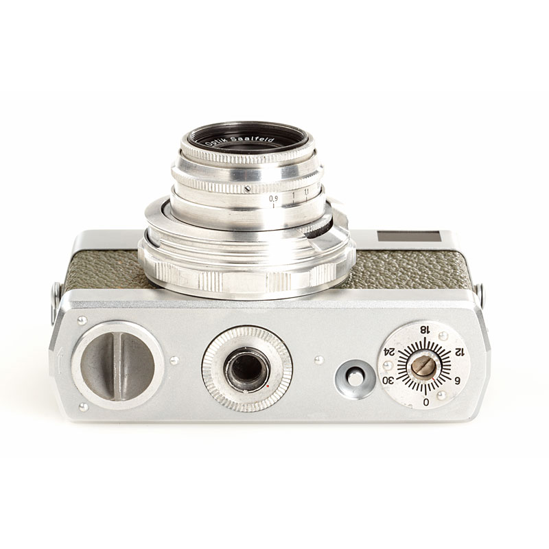 the very first and never seen Werra I in perfect condition with Optik Saalfeld Novonar 3.5/50mm T no.4192596, hood, cap, maker's box