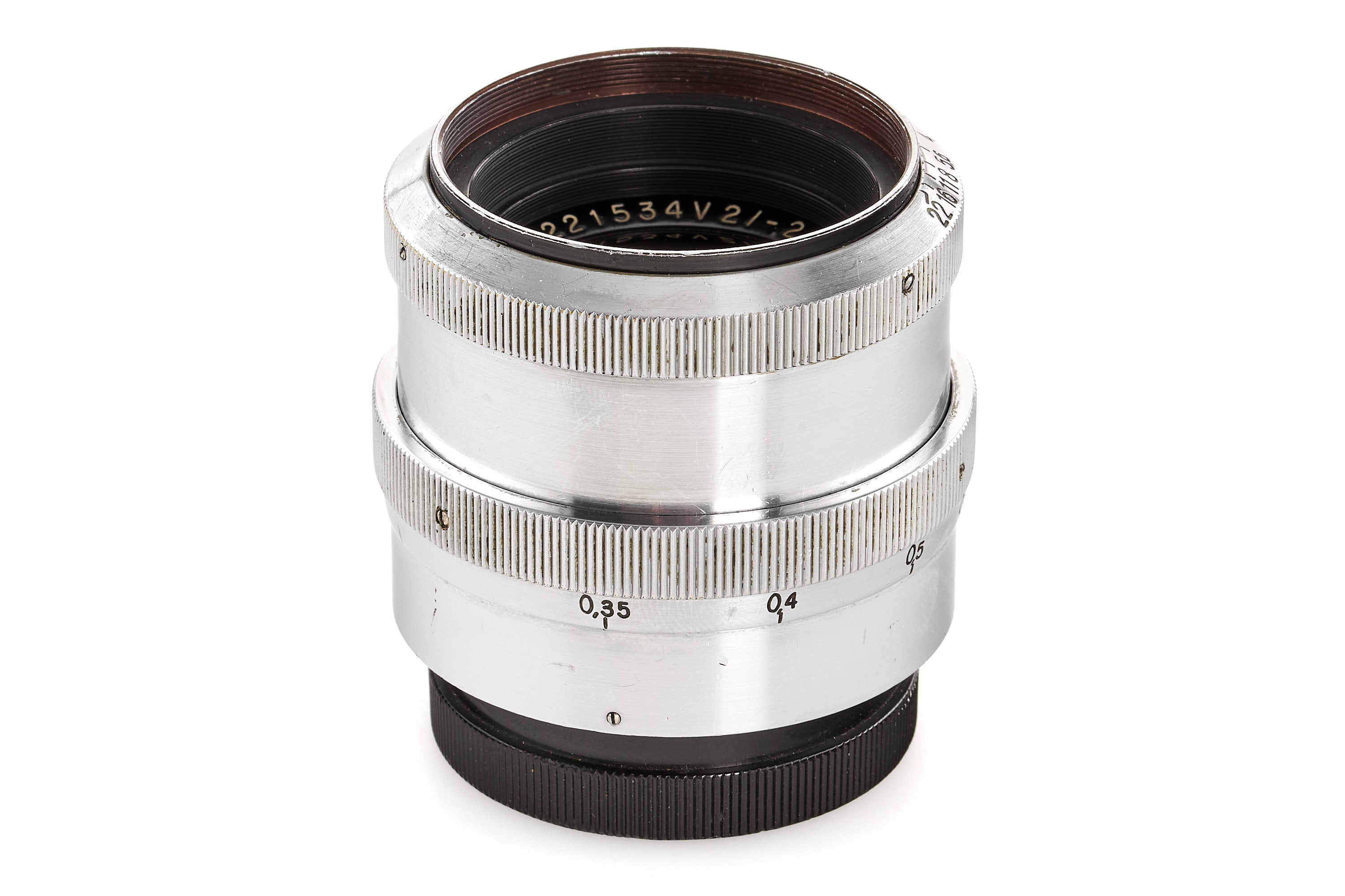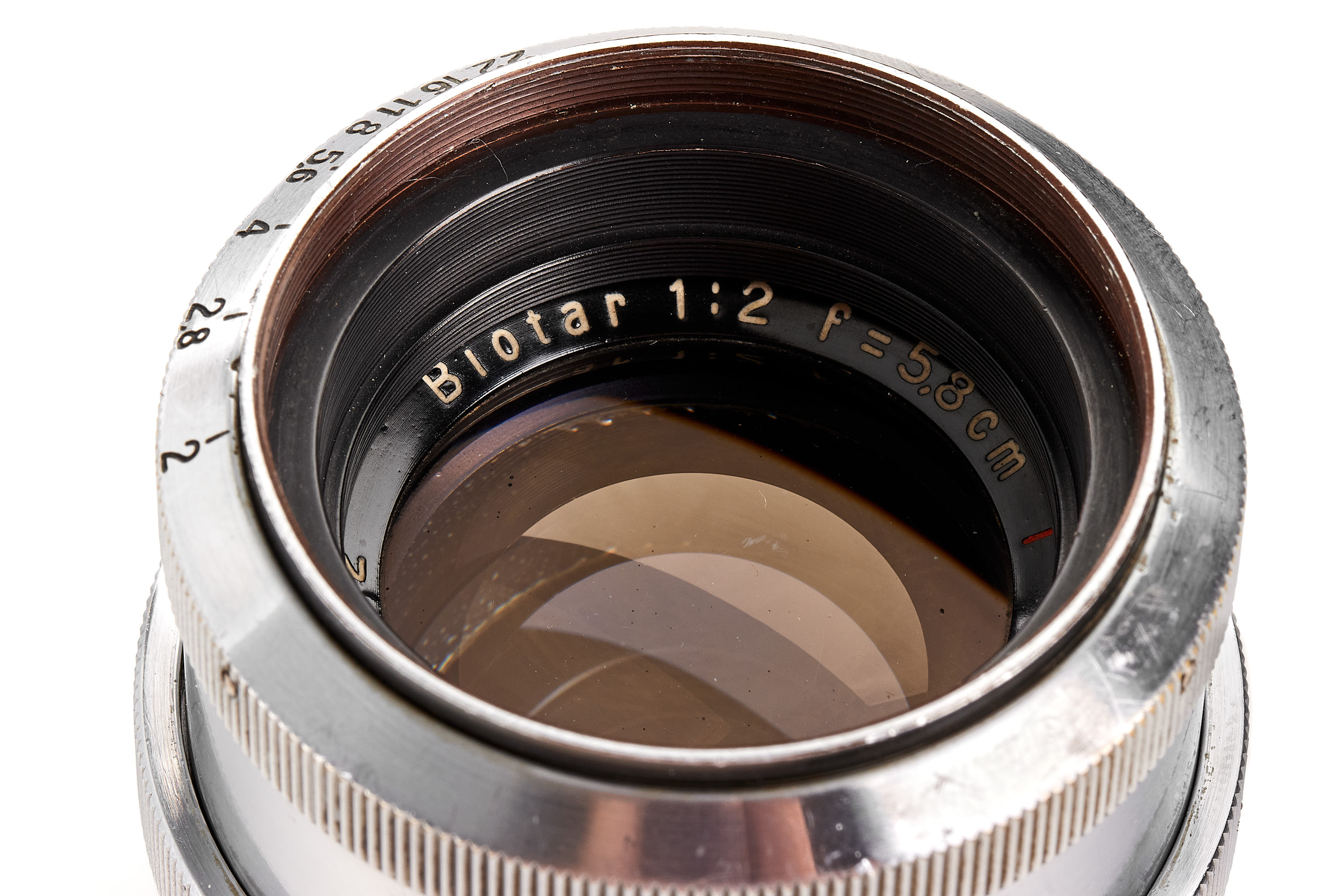 Very rare and interesting close-up 5.8cm Biotar prototype in Exakta mount, with a special serial number ending with 'V 2/-2' (unusual form), focus from infinity to 0.28m, in very good condition, early coated optics showing some haze and light cleaning marks, with rear lens cap.