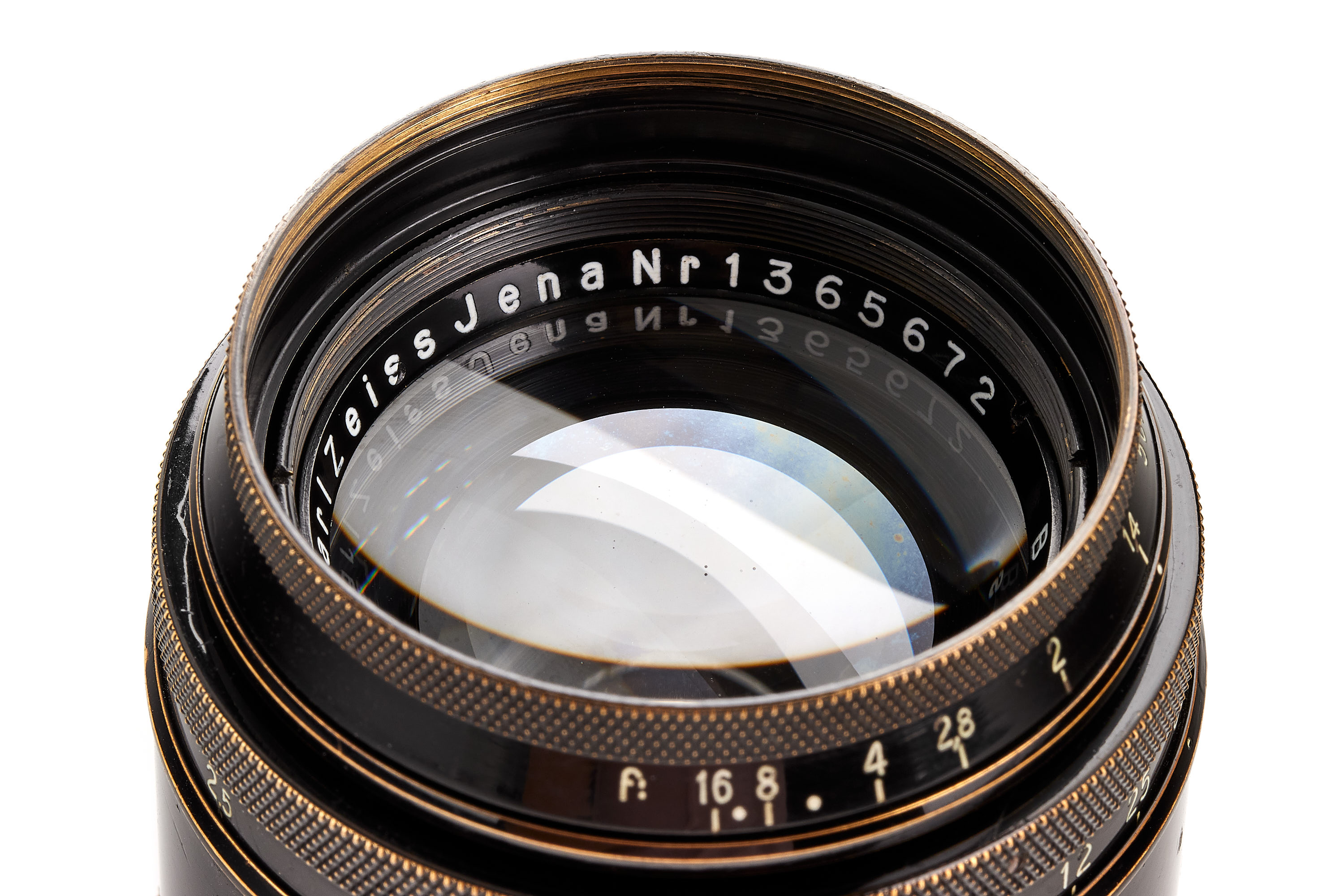 Very rare early fast lens in original rangefinder coupled Leica M39 mount, feet version in very good condition, optics in particularly good condition, only showing few hair-thin cleaning marks, with original black painted hood and both caps.