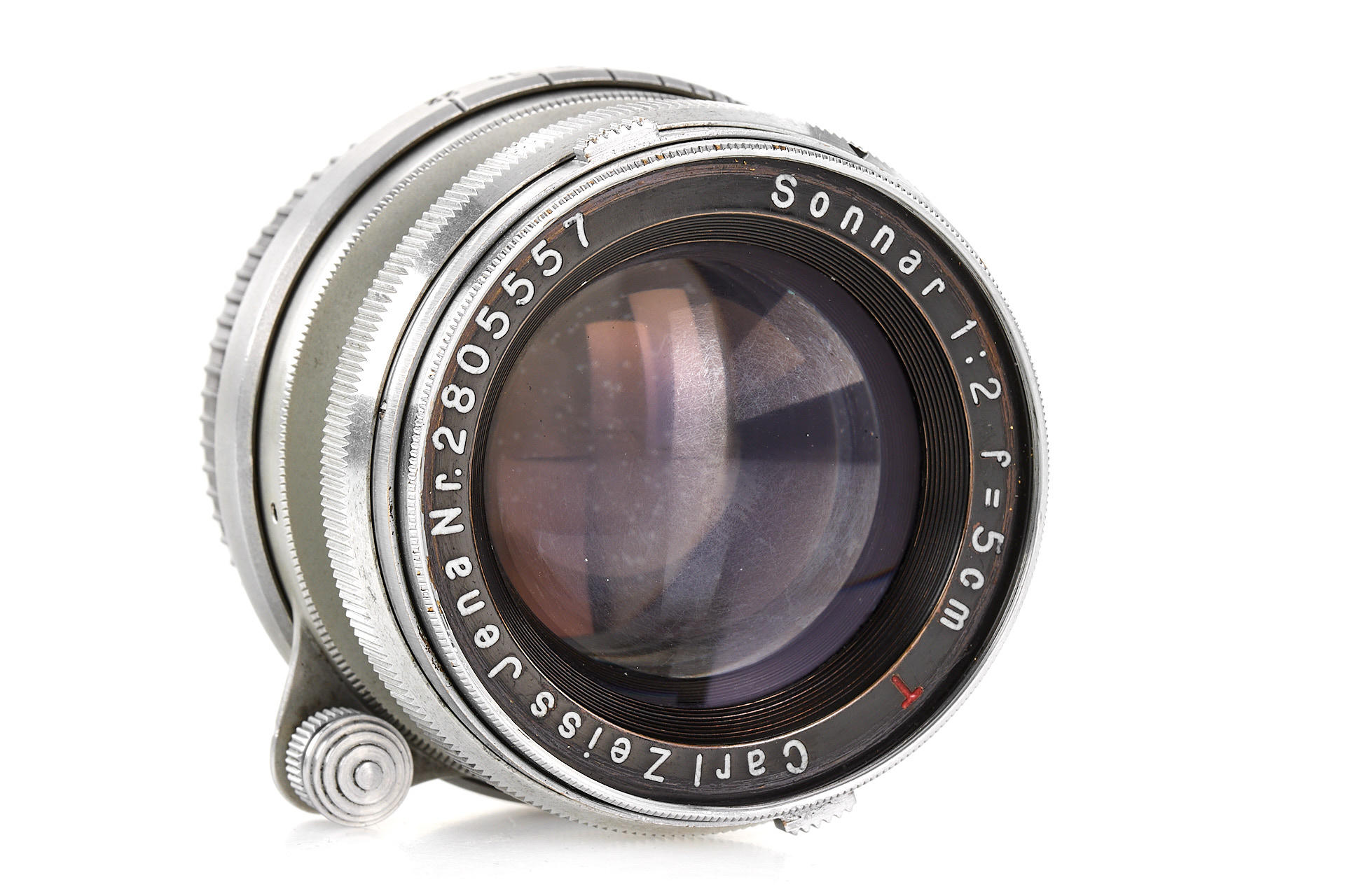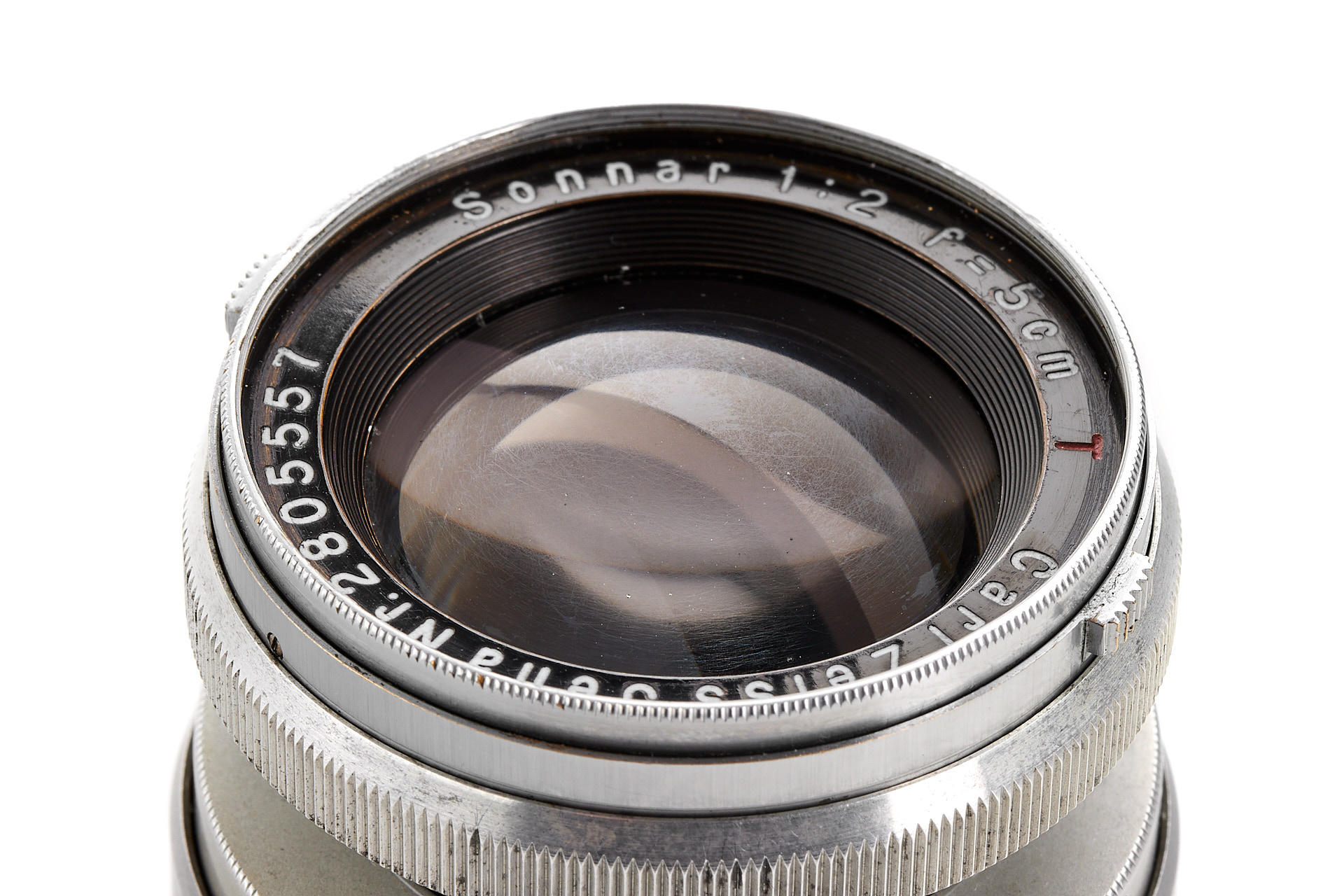 very rare Sonnar in original, rangefinder-coupled and collapsible M39 mount, in good original condition, T coated optics with visible cleaning marks, from a small batch of 200 post-war lenses, with rear cap