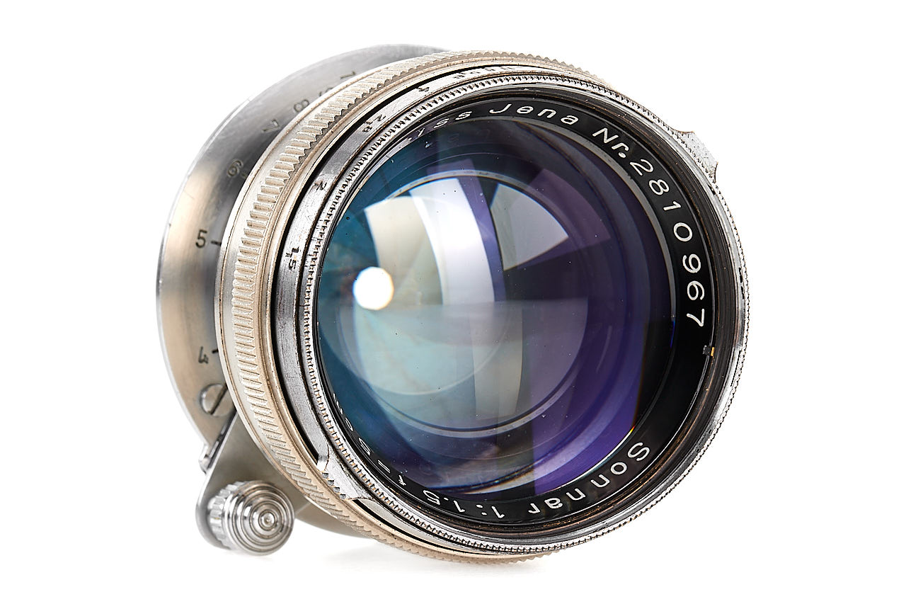 Very interesting Sonnar, originally for Contax, later adapted in rangefinder-coupled Leica M39 mount, note the nickel finish barrel and feet chrome finish mount, in good condition, with good T-coated optics only showing minimal cleaning marks.
