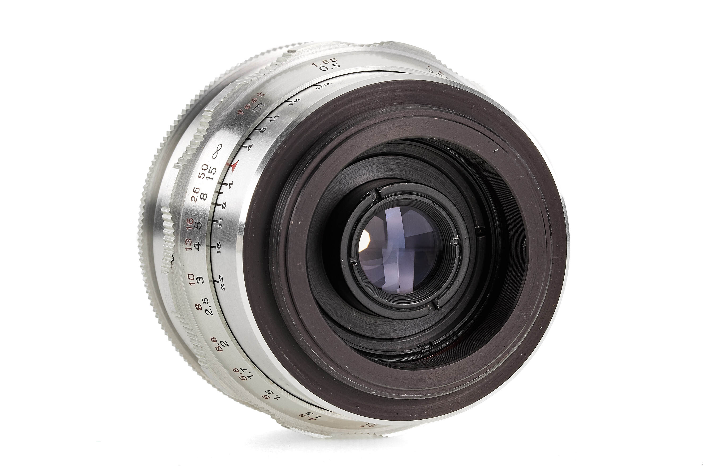 An extremely rare ultraviolet (UV) lens in M42 mount, built with three elements in three groups, all made of special glass with high UV transmission. Intended for scientific and forensic photography, such lenses were produced only in very small numbers, most likely on special order. The offered example is in mint condition, complete with caps and the original maker’s box.