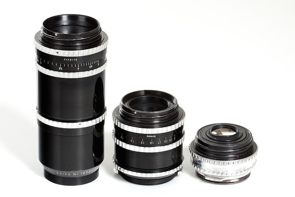 for Hasselblad 1600F & 1000F: Tessar 2.8/80mm no.834295 (cap), Sonnar 3.5/135mm no.1591024 (cap), Sonnar 5.6/250mm no.1839638 (cap) - all lenses in good condition