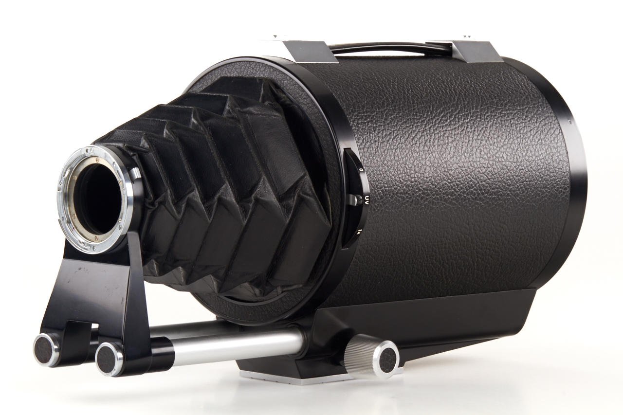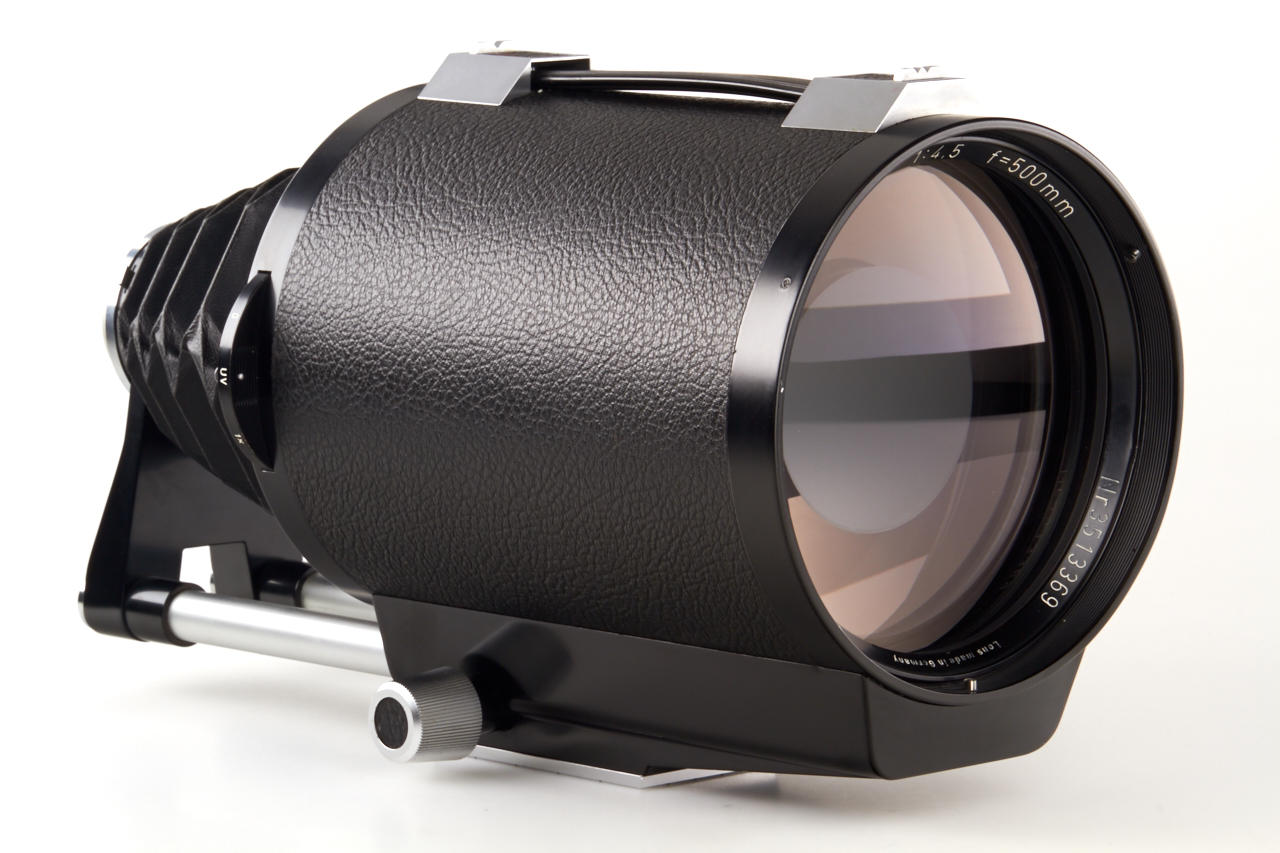 very rare mirror tele lens for Contarex (total production 200 units only), in near mint condition with clean optics, with rear cap, UV filter and original leather case