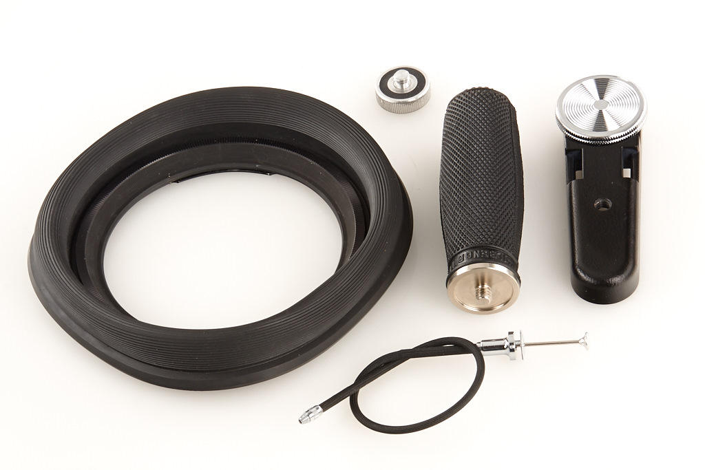 for Contarex, in almost mint condition (clean lenses), complete with caps, hood, grips, fitted leather case