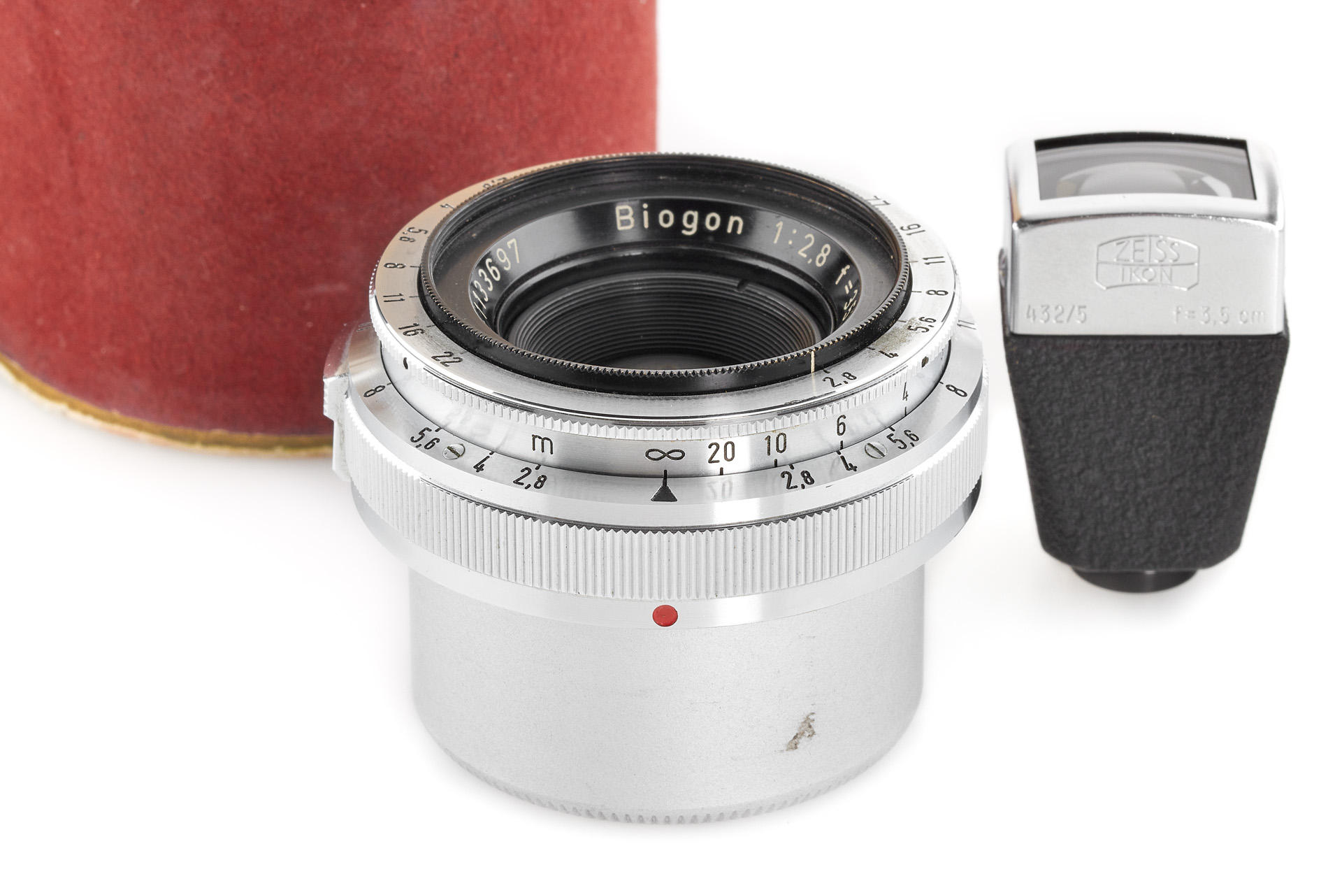 wide angle lens for Contax IIa/IIIa in beautiful, near-mint condition, very good optics, with both caps, 432/5 finder and maker's box (different number)