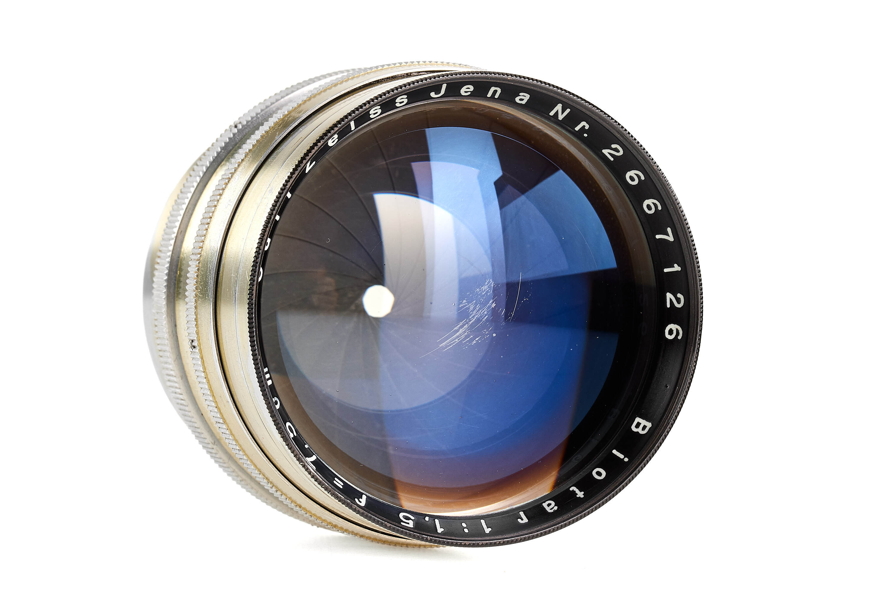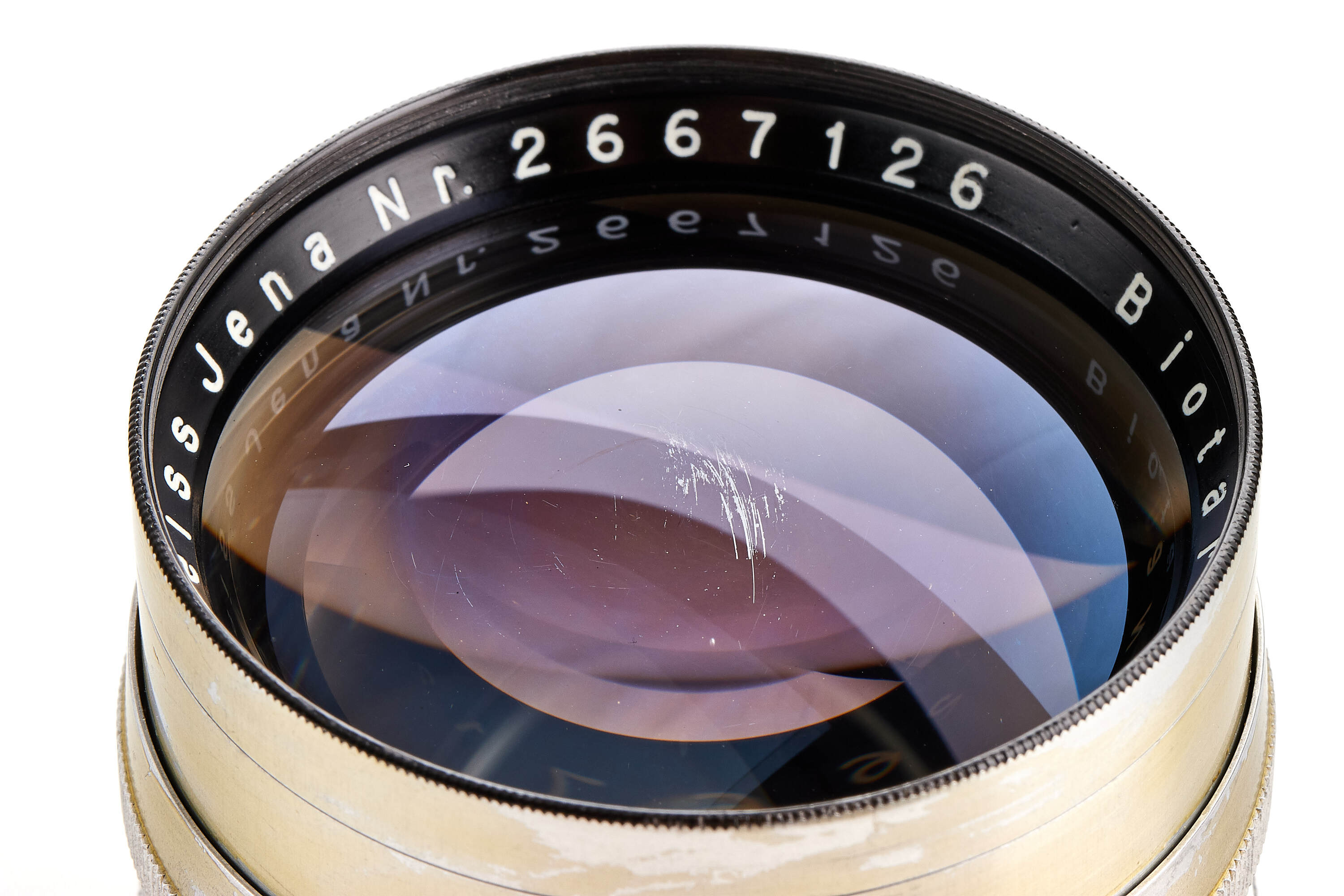 Rare extremely early Biotar 1.5/7.5cm no.2667126 with original Exakta mount, in very good condition, optics later coated, only showing a few discrete cleaning marks, with hood and front cap.