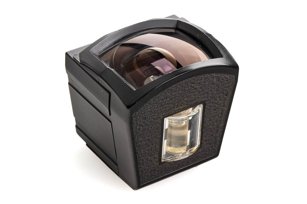 The Hologon provides a dramatic 110° angle of coverage with virtually no distortion. Its slight vignetting was compensated by a special center filter, while a large bright-line finder completed the outfit.