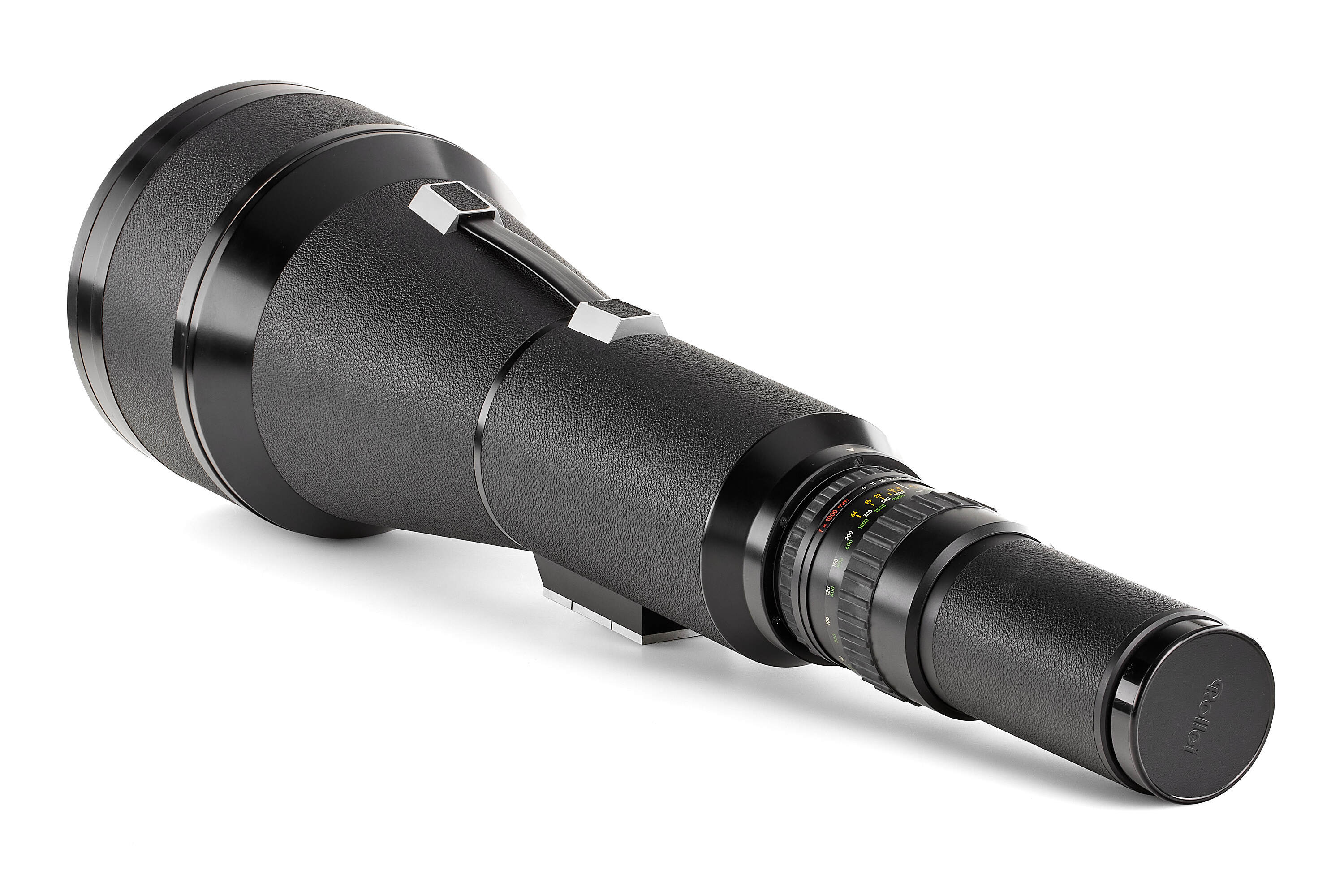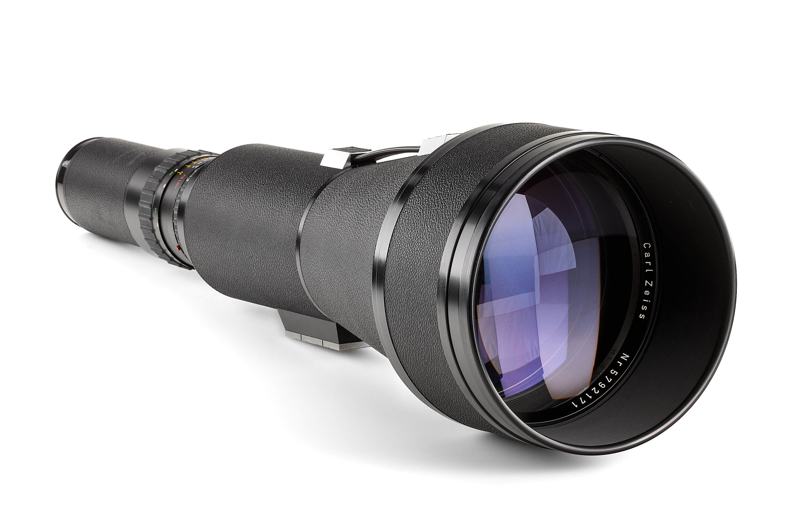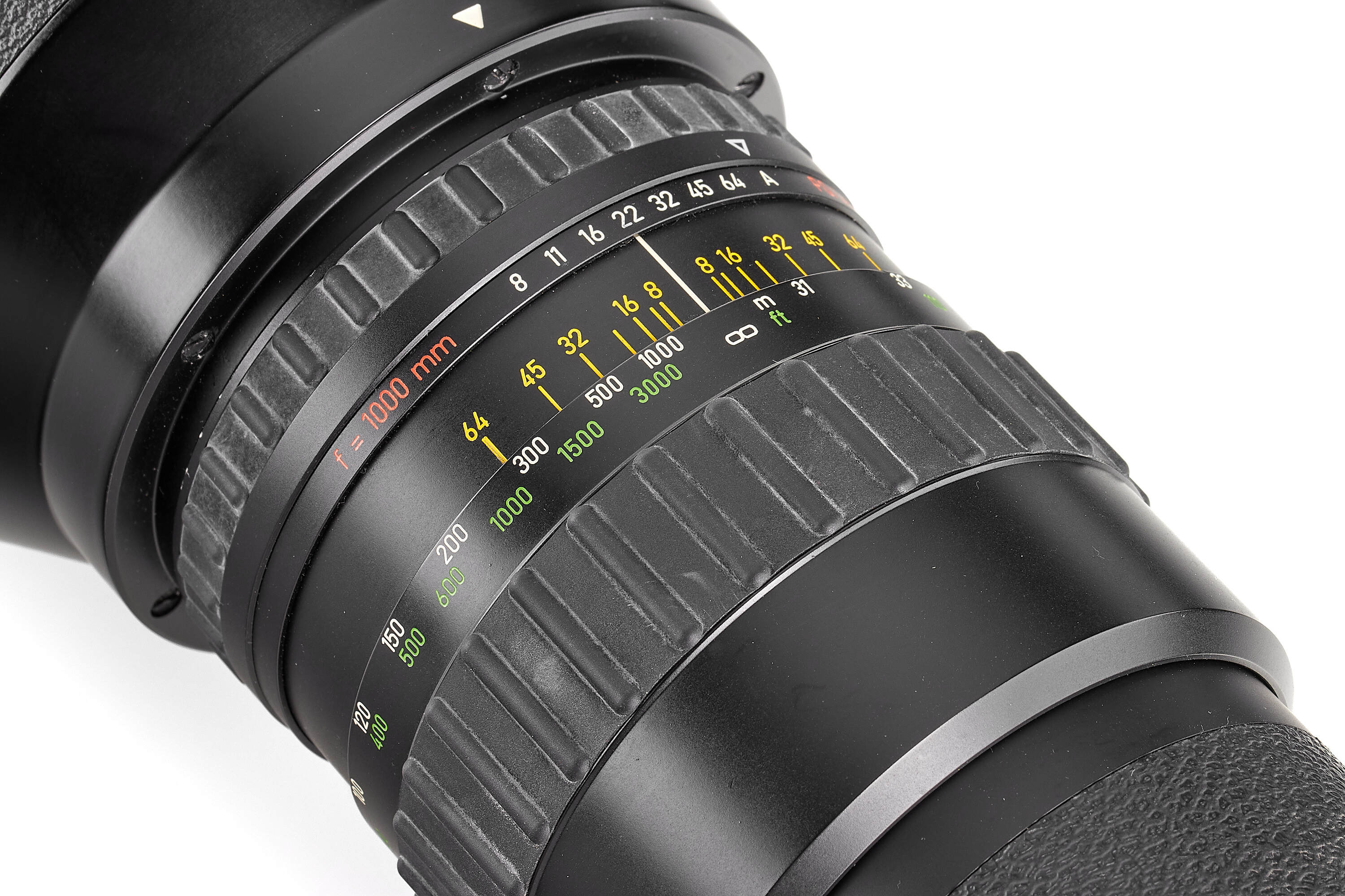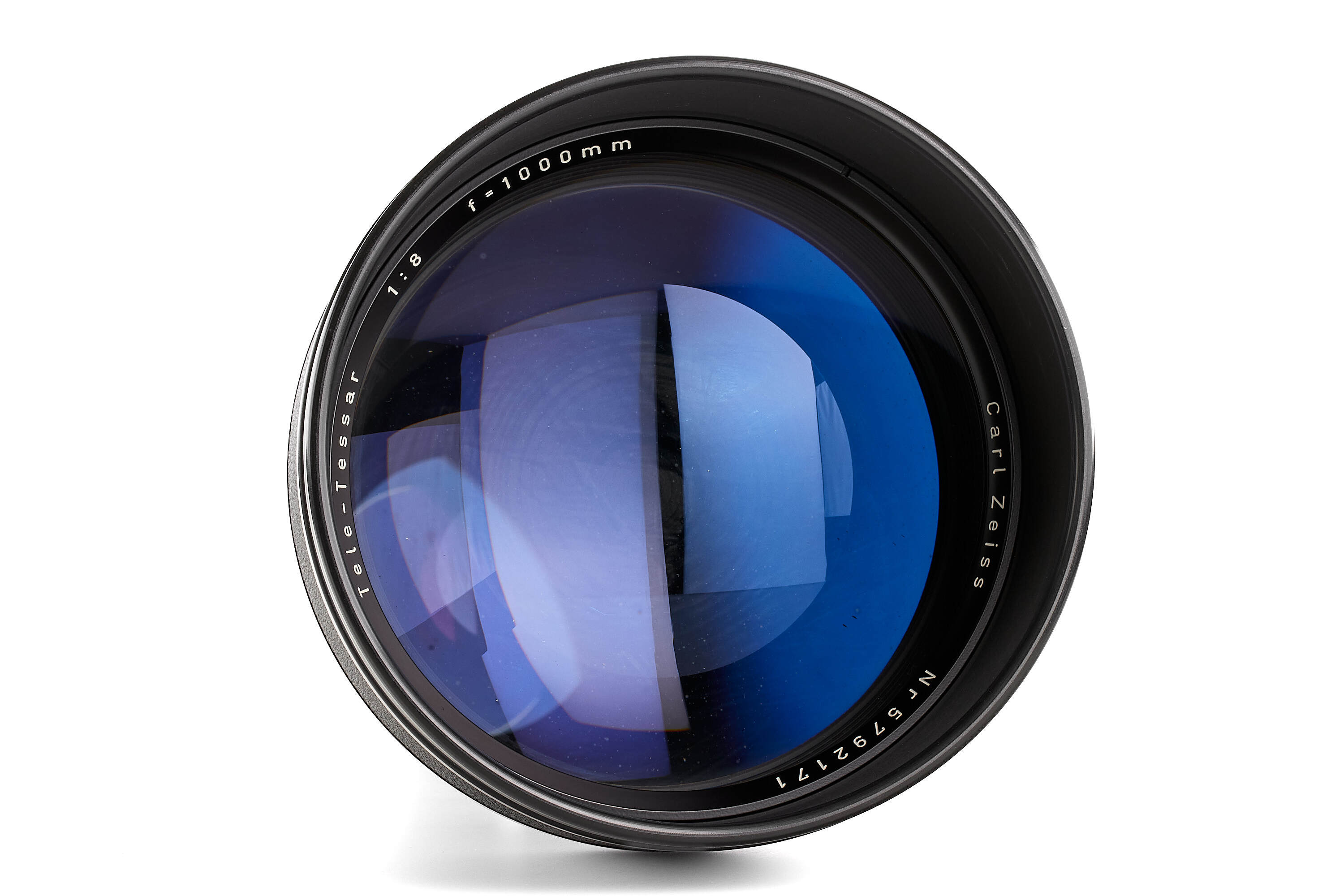 An extremely rare Carl Zeiss Tele-Tessar 1000 mm for the Rolleiflex 6000 system. Part of the prestigious Rollei PQ (Professional Quality) series, this lens was built to the highest technical standards, incorporating an advanced electronically controlled leaf shutter with speeds up to 1/1000 s. Its optical construction follows the much earlier version made for the Rolleiflex SL66, but it was significantly upgraded with a fully automatic diaphragm and integrated leaf shutter.