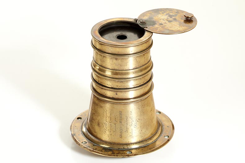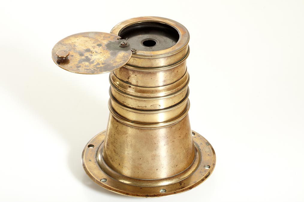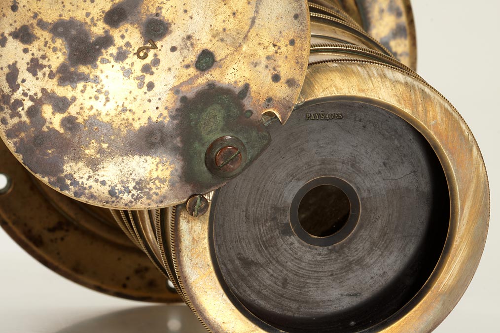 extremely rare brass portrait lens engraved: Photographe a Verres Comines Invente par CHARLES CHEVALIER Ingenieur Palais Royal, 158 Paris, focal length: approx. 55 cm. height 21cm, front diameter: 9cm, front shutter engraved: 2, in original condition with clean optics, Charles Chevalier (1804-1859) was the son of Vincent Chevalier (1771-1841)
