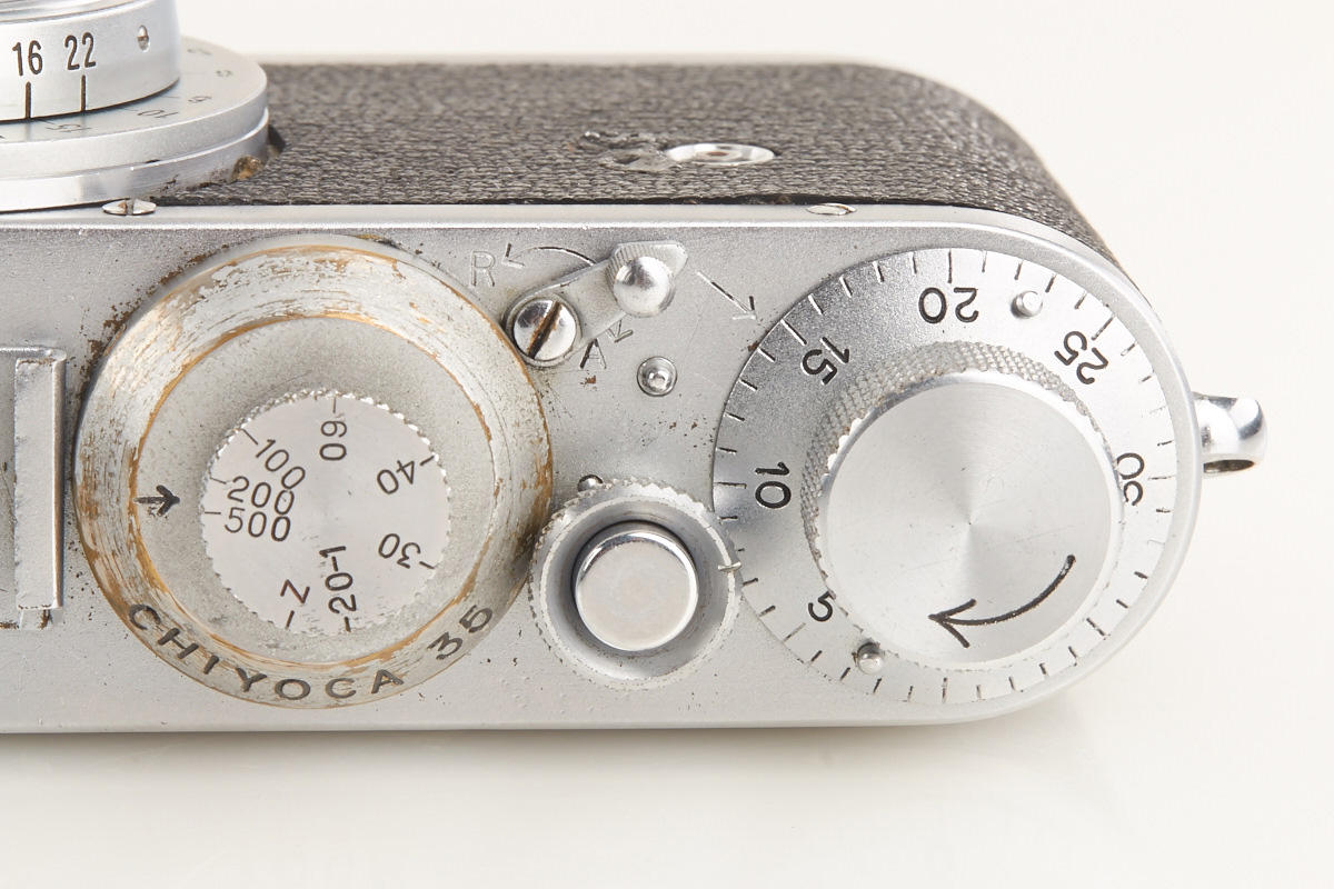 rare first type Chiyoca without serial number with Konishiroku Hexar 3.5/50mm no.1321387 and matching Hexar cap