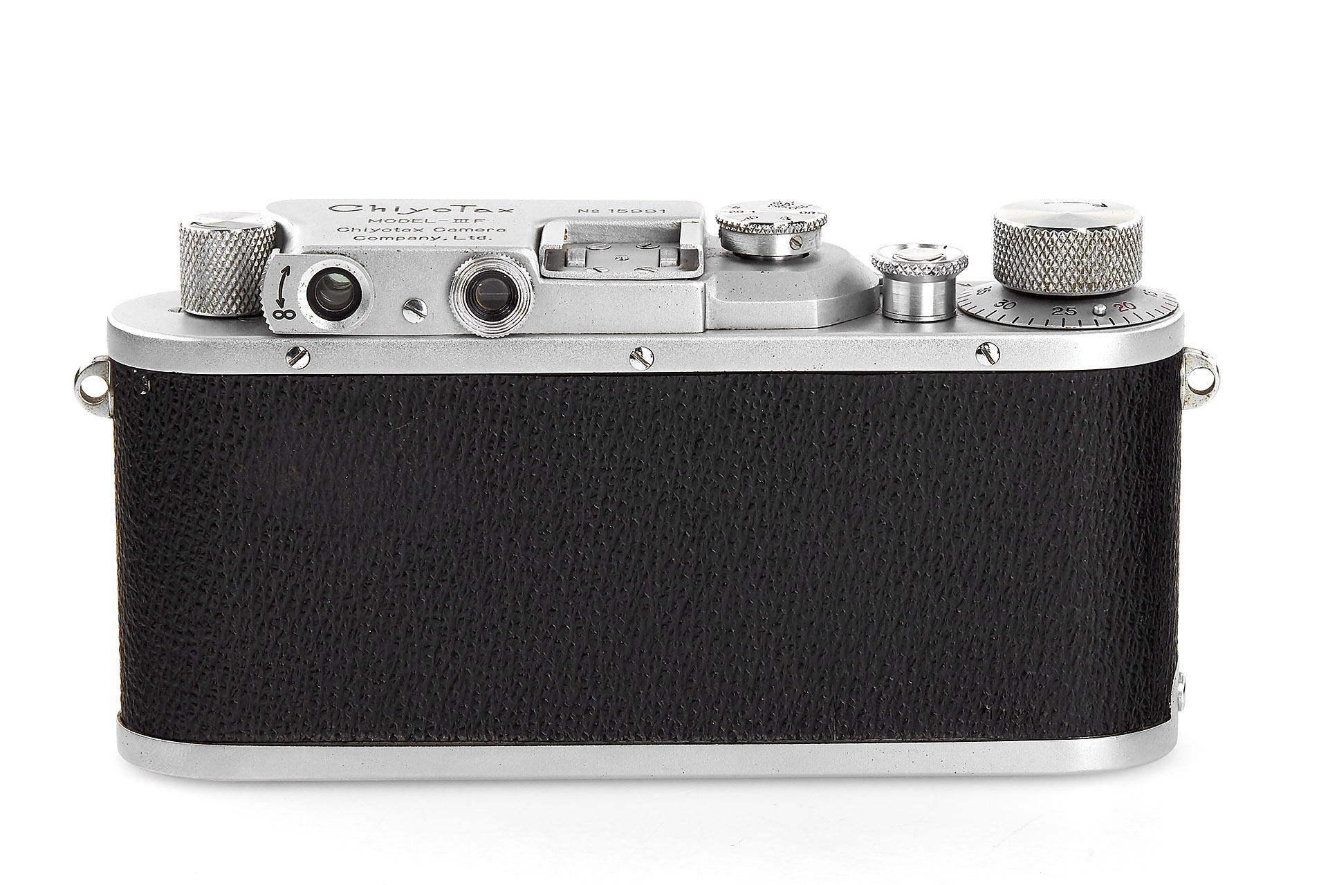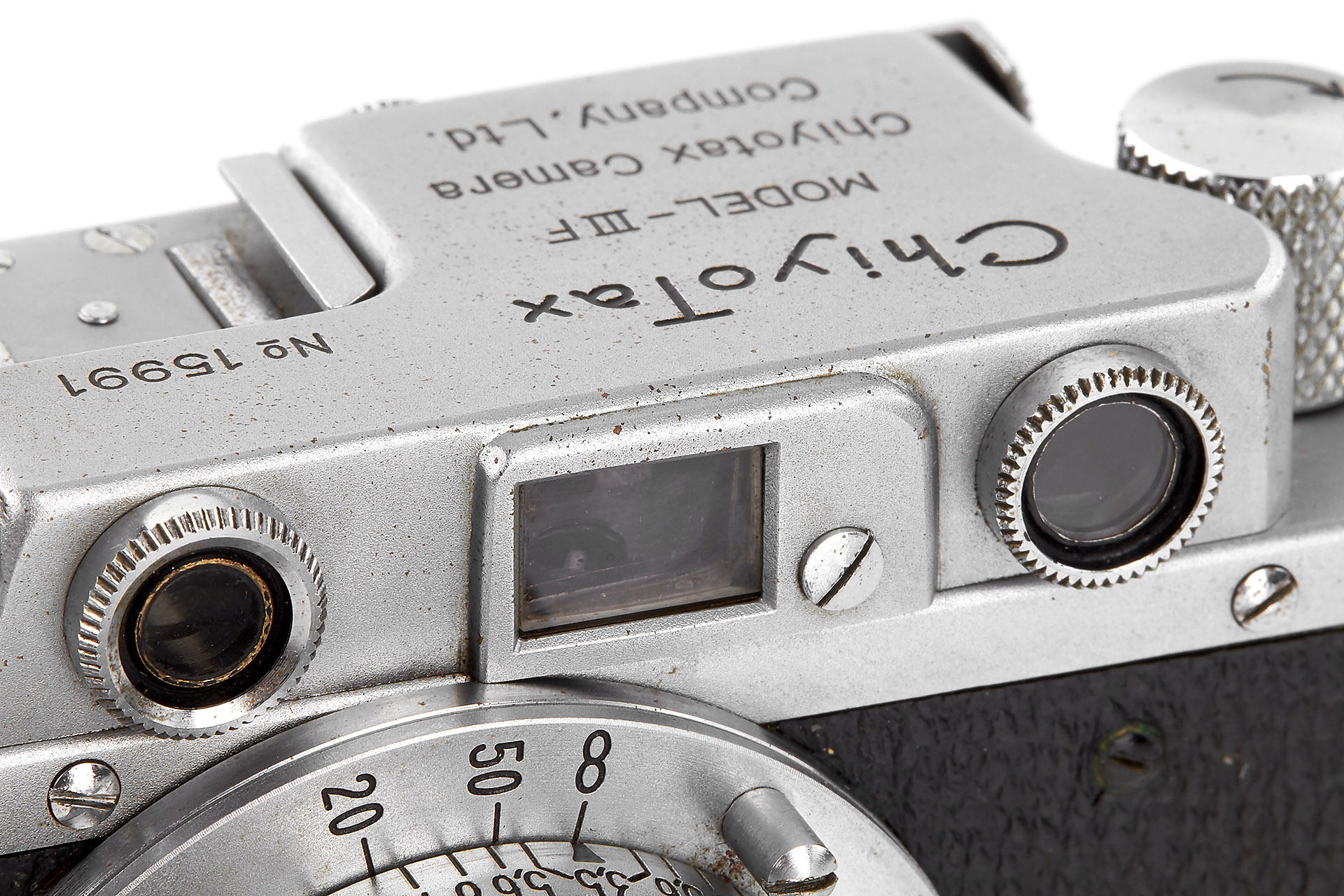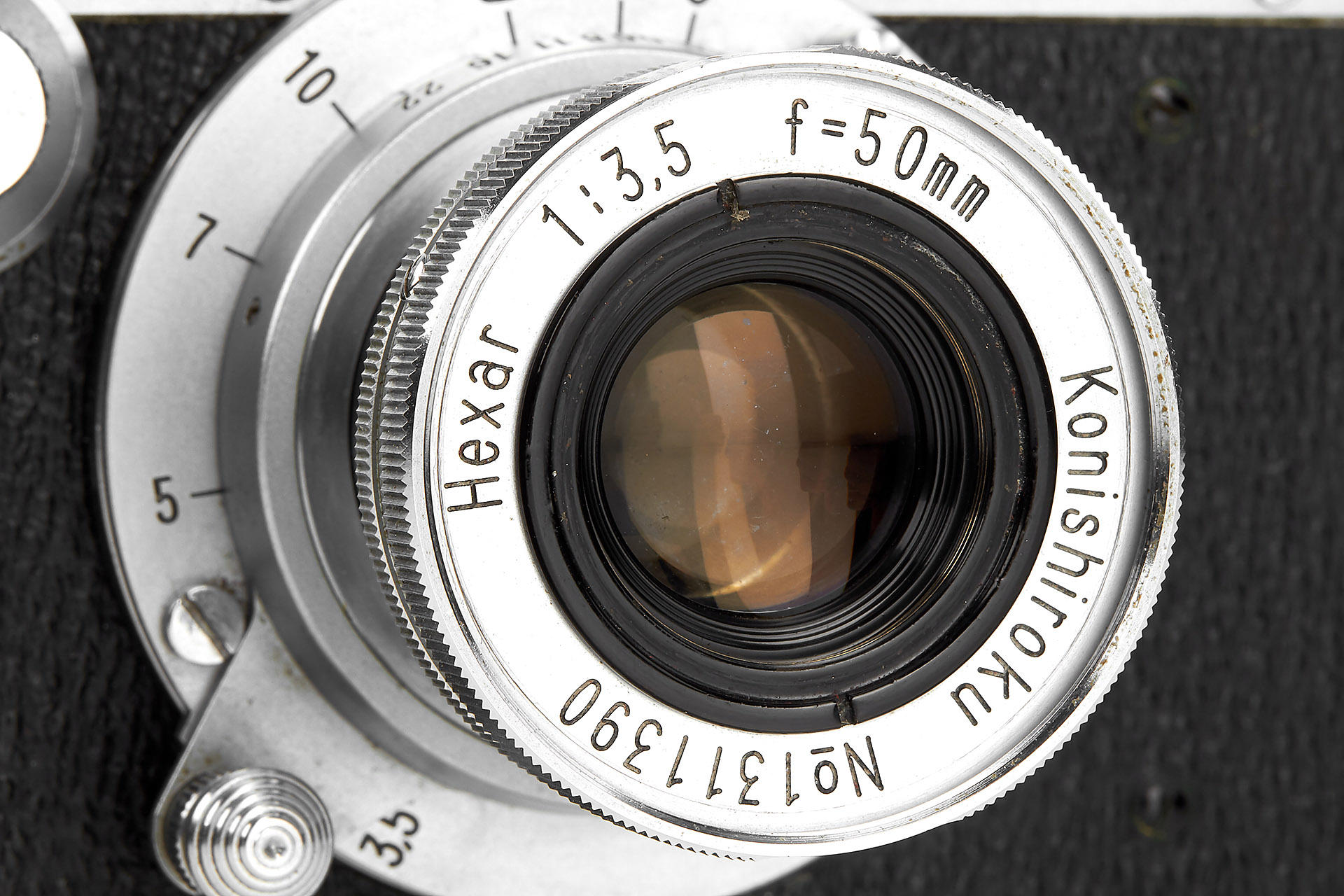 rare Leica III copy (first version) in excellent condition produced by Chiyotax Camera Company Ltd., matching collapsible Hexar 3.5/50mm no.1311390, yellow filter
