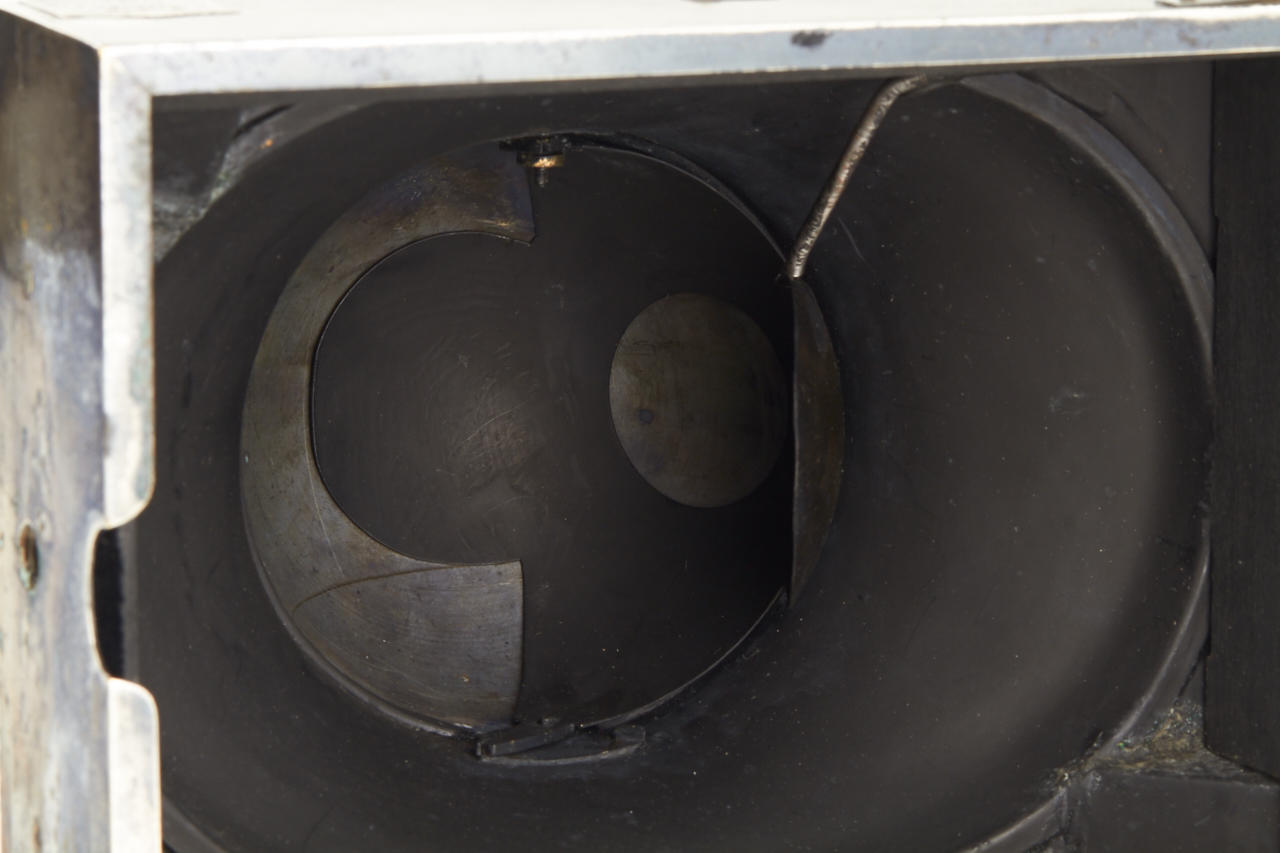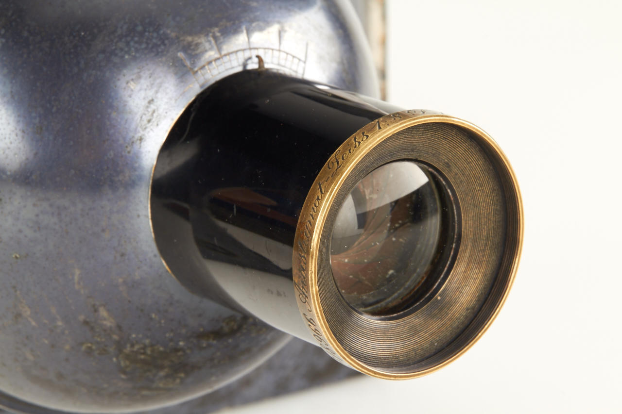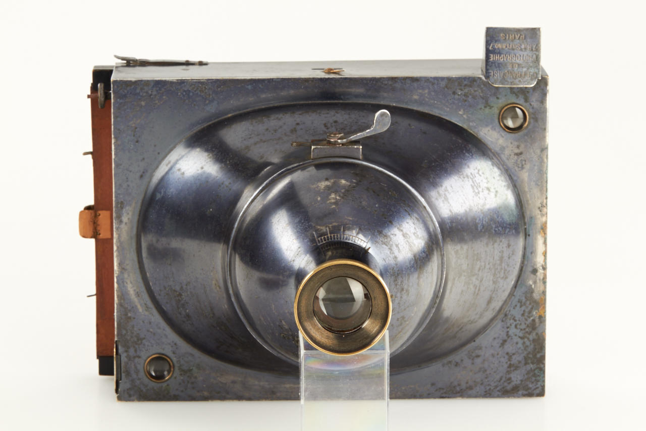 very rare Photosphere for 13x18cm, all metal housing in very good original condition, shutter in form of hemisphere, two integrated finders, Krauss Paris Anastigmat-Zeiss 8/167mm no.18966, inclusive ground glass and two matching film holders