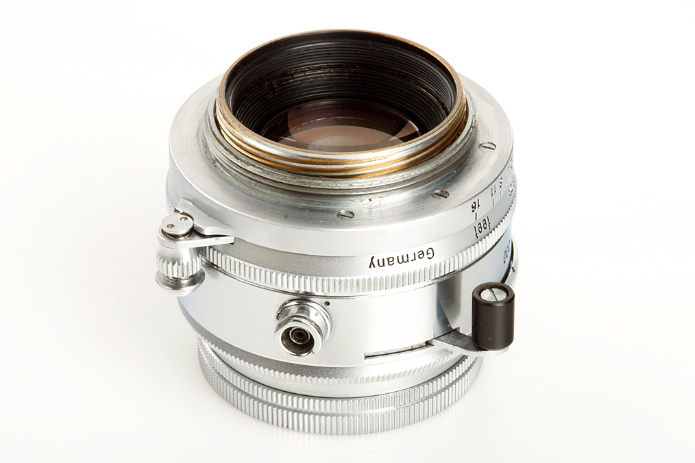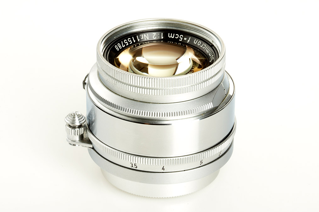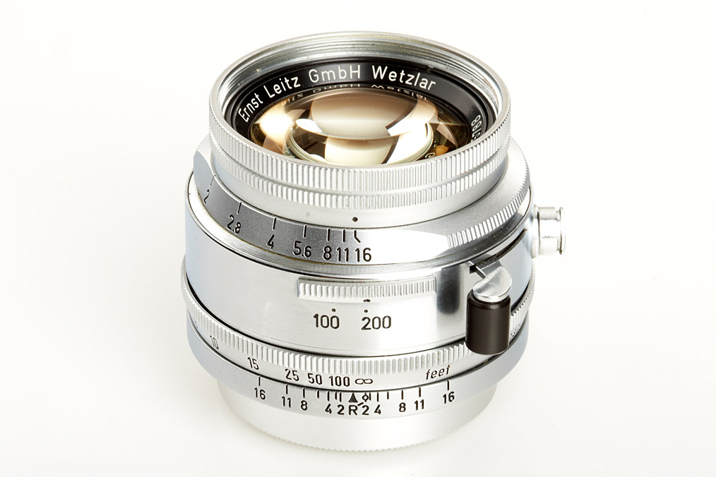 very rare Summicron with built-in Compur shutter, synchronised for 1/100 + 1/200 sec., feet scale, engraved: Germany, only 58 of these lenses were built, with perfect copy of shutter release linkage