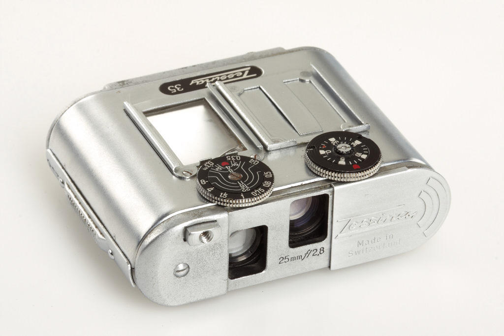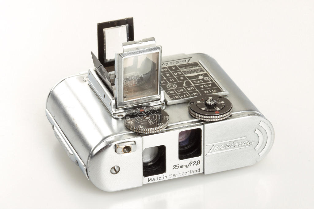 (1) Tessina 35 chrome no.768385 (no waist level finder) in working order, (2) Tessina Automatic 35mm no.363804 in good working order with waist-level finder, case (2)