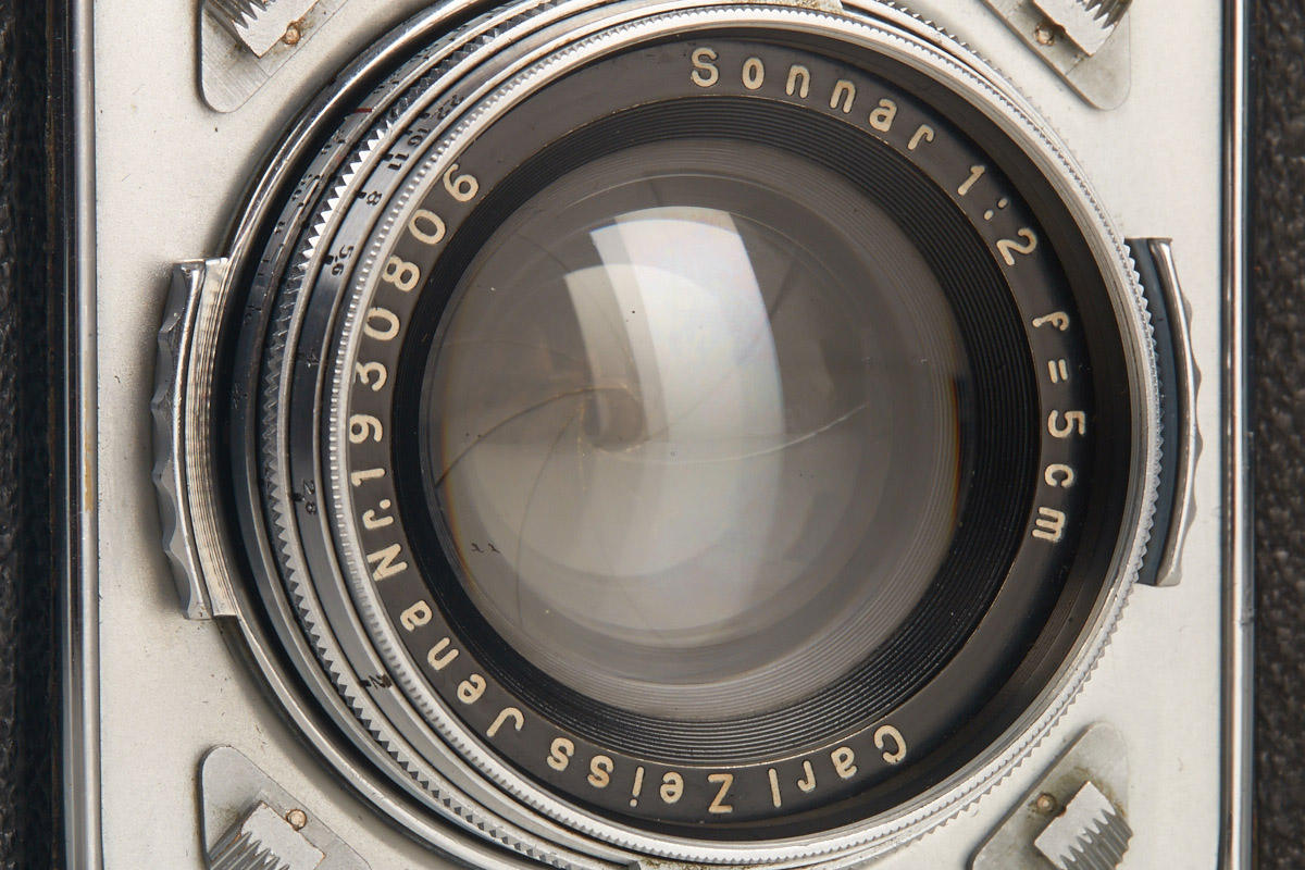 classic 35mm TLR in fantastic, original condition, shutter in perfect working order, meter operable, Sonnar 2/5cm no.1930806, original cap with cord, Zeiss Ikon brochure and Photo-Schaja brochure from 1935