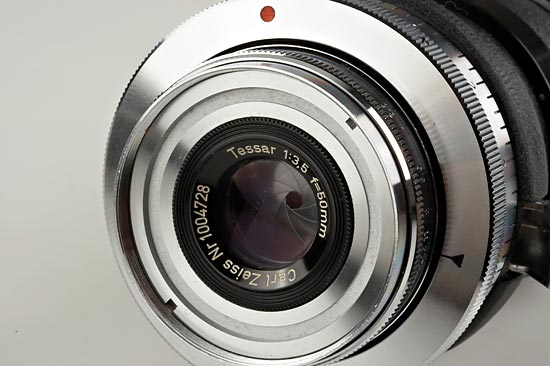 for Contax, complete Contaprox II with rigid Carl Zeiss Tessar 3.5/50mm no.1004728 in focusing mount 563/012, close-up lenses 1251 and 1252, extension tubes 5522/13+14+15, focusing screen adapter 5520/6, very rare "Infinitarlinse" 922/S40.5 in original maker's box