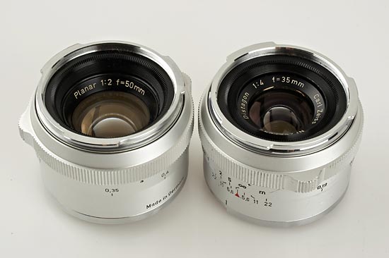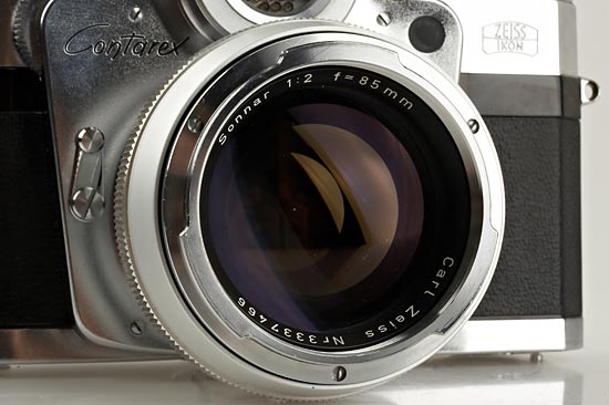 late model in mint condition (light meter working) with 4 lenses (Planar 2/50mm no.2374086, Distagon 4/35mm no.2627042, Sonnar 2/85mm no.3337466, Sonnar 4/135mm no.2617560), caps, case
