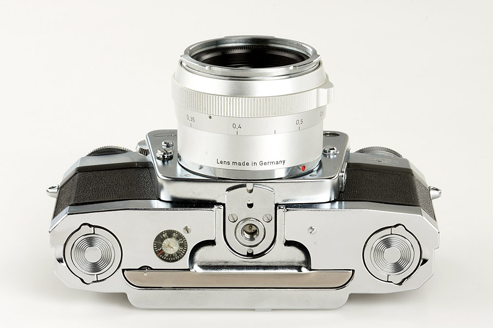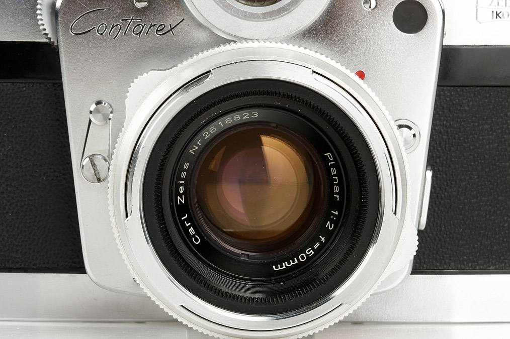 near mint body (meter inoperable), chrome Planar 2/50mm no.2616823 (cap), black Sonnar 2.8/135mm no.4219637 (cap), copy of instructions, everready case