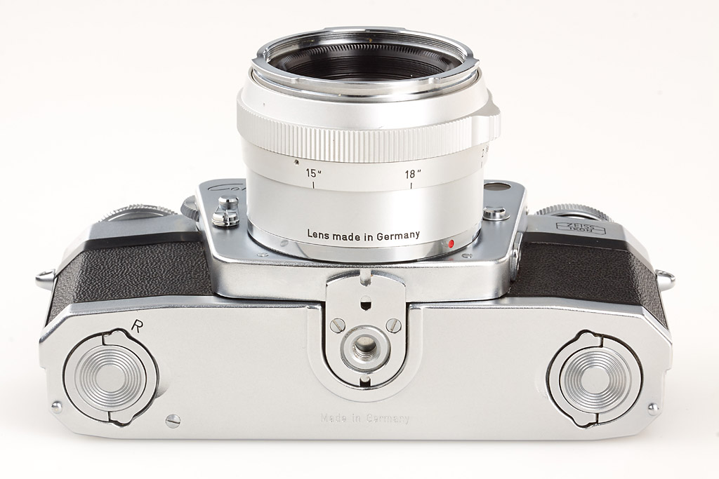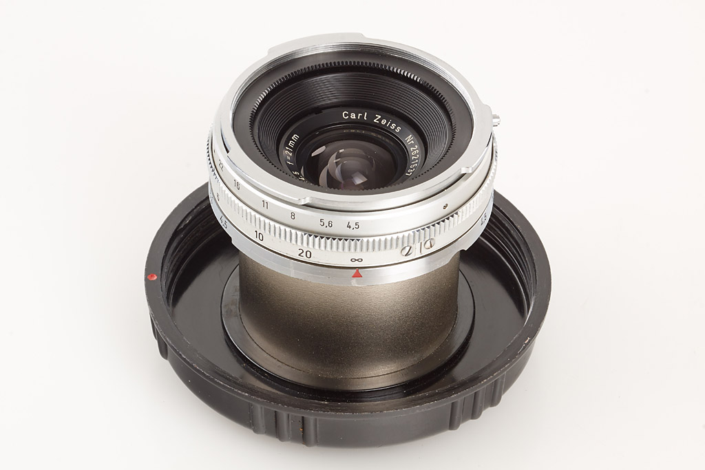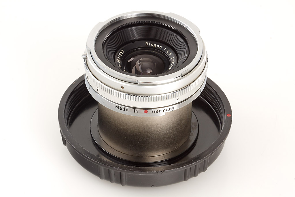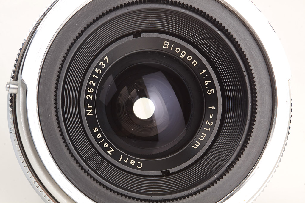 in mint condition and good working order (exposure meter not accurate) with chrome Planar 2/50mm no.2371399 (clean lenses, cap), Biogon 4.5/21mm no.2621537 (keeper) and matching 21mm finder 435