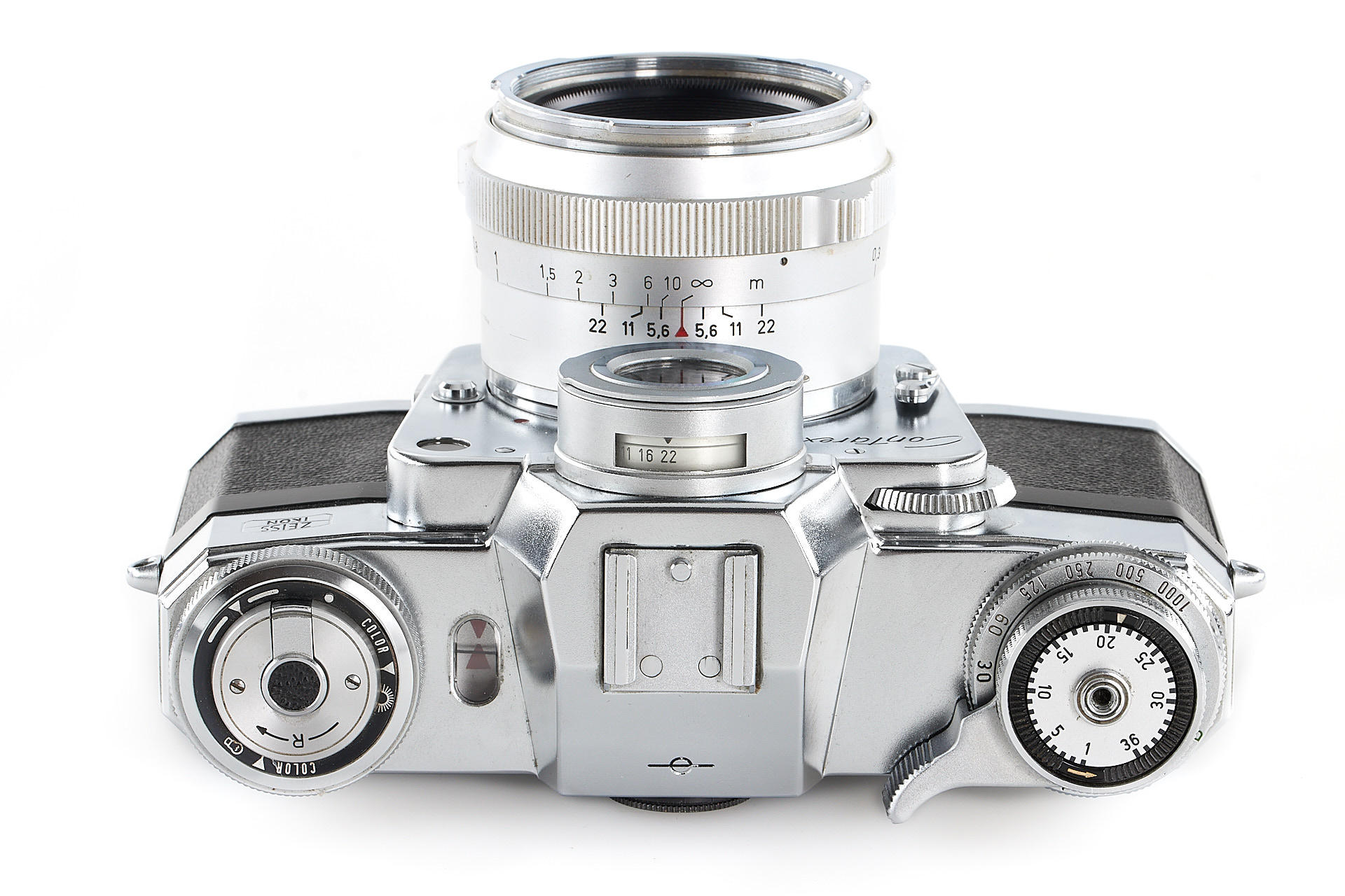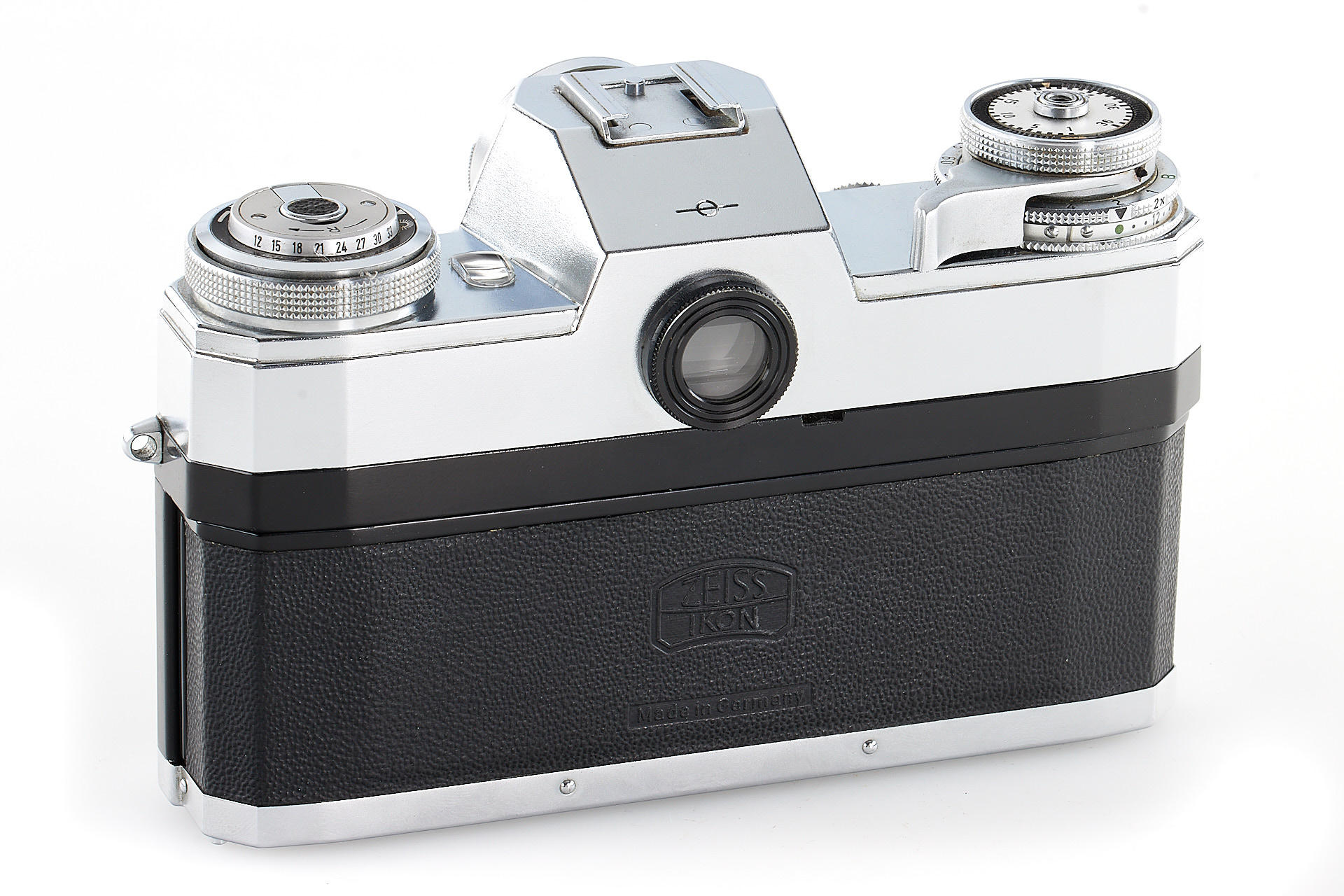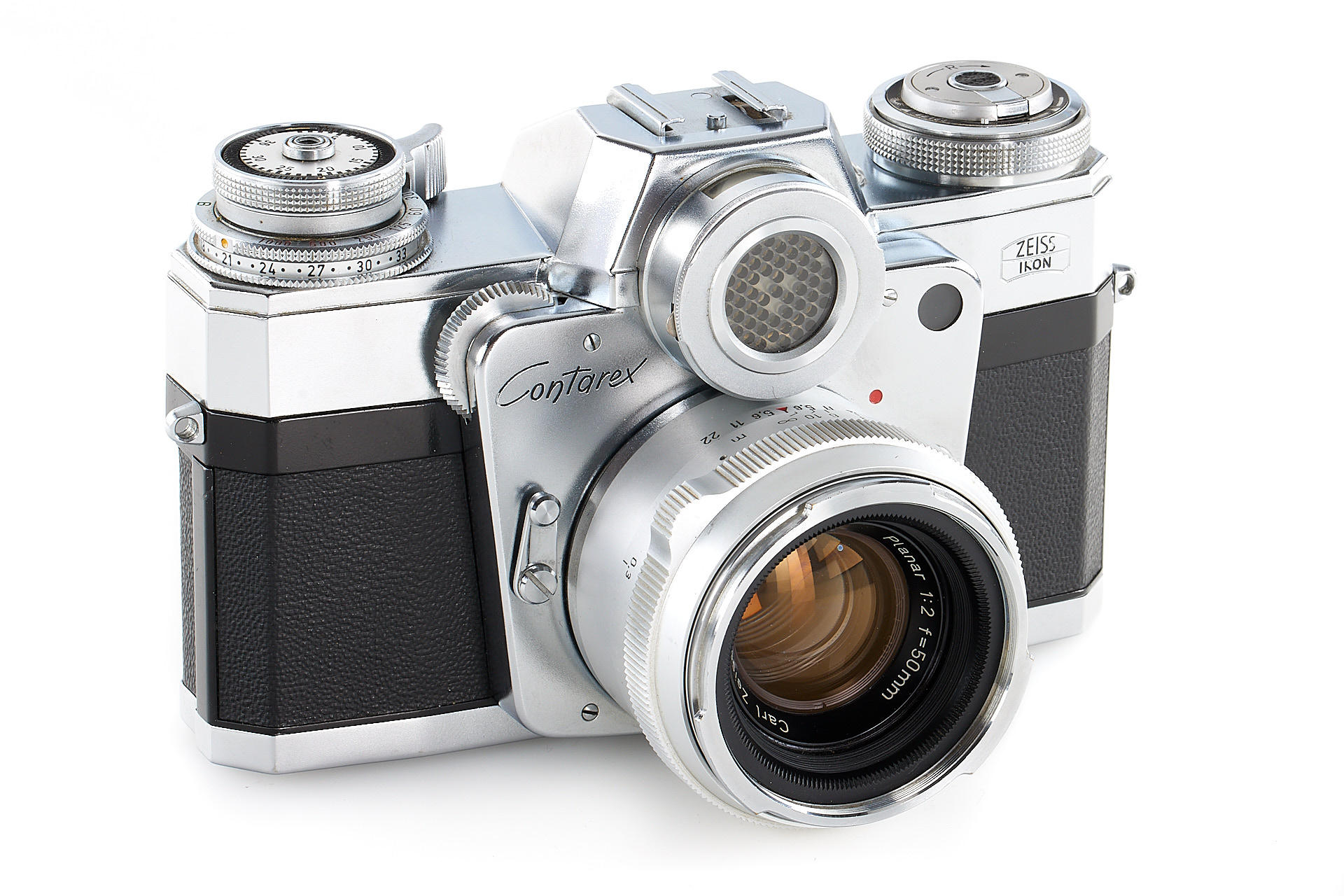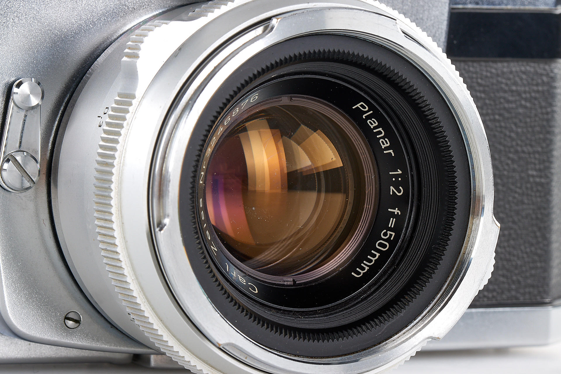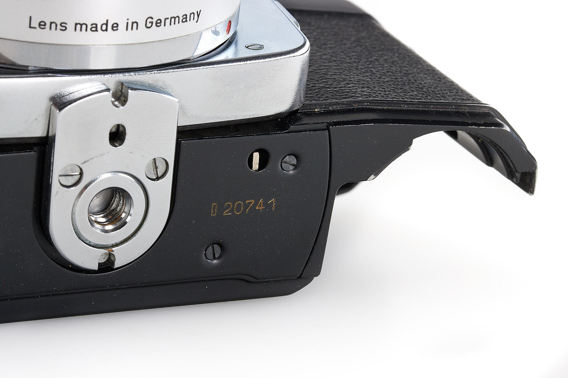 late version in mint condition and working order, with Distagon 4/35mm no.3260227 (cap and plastic keeper) showing some separation, Planar 2/50mm no.3246876 (front cap) only showing some haze, Sonnar 2.8/135mm no.4220147 (front cap), 3 filters, set of 4 Protar lenses, 1 chrome and 1 black additional magazines