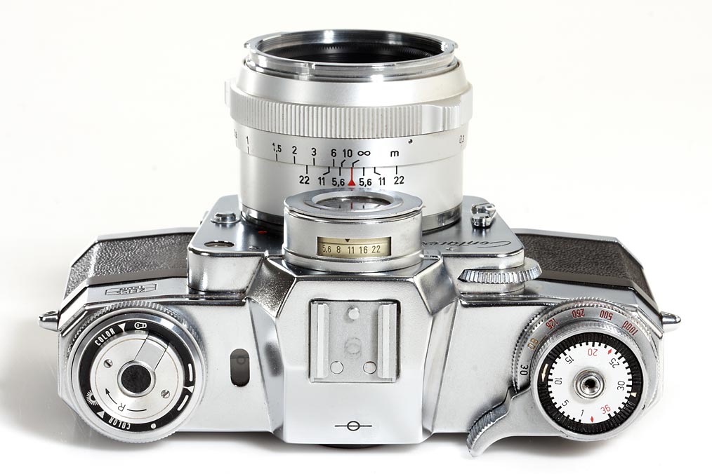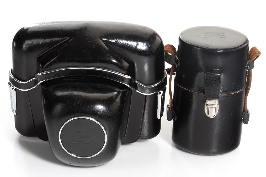 fine body (meter inoperable) with Planar 2/50mm no.3248494 (cap), Sonnar 4/135mm no.3595542 (cap, keeper), everready case