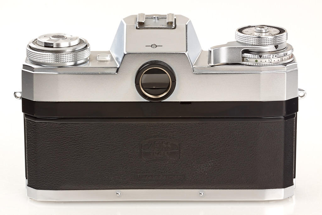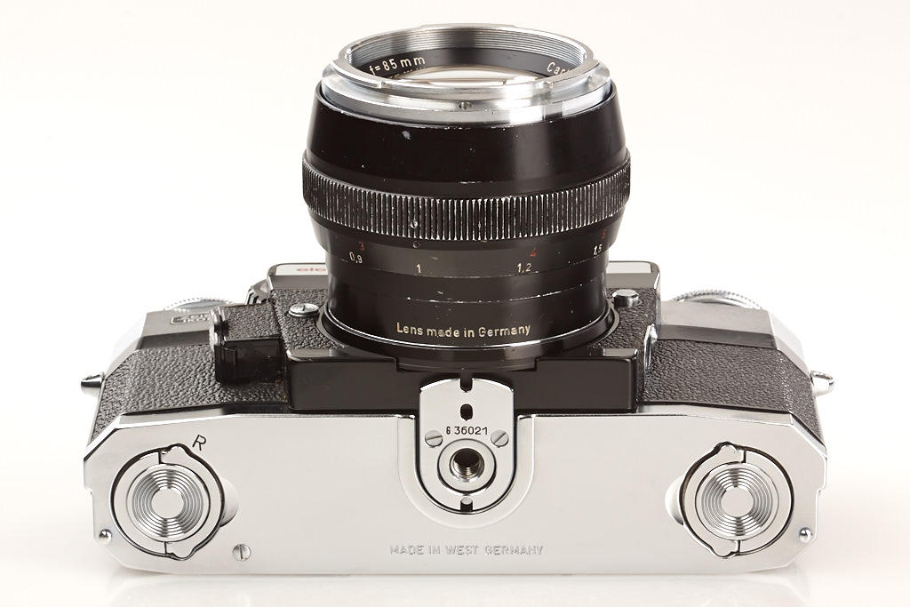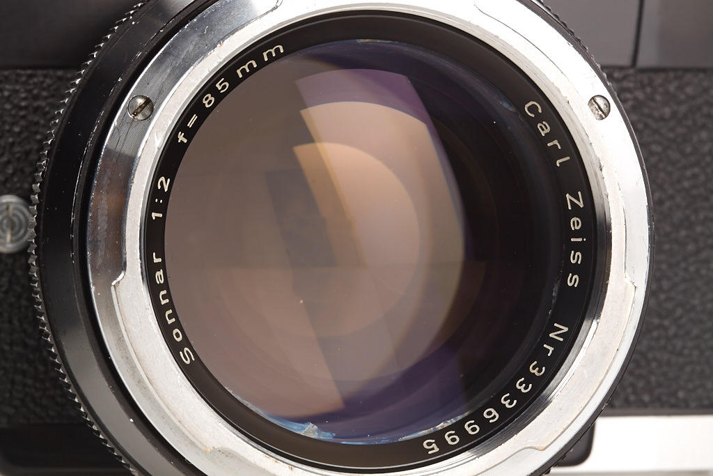 (1) chrome Electronic body no.G36021 (shutter and exposure meter not working), (2) near mint Bullseye body no.G30862 (exposure meter not operable), (3) black Sonnar 2/85mm no.3336995 (small separation and cleaning marks, cap) (3)