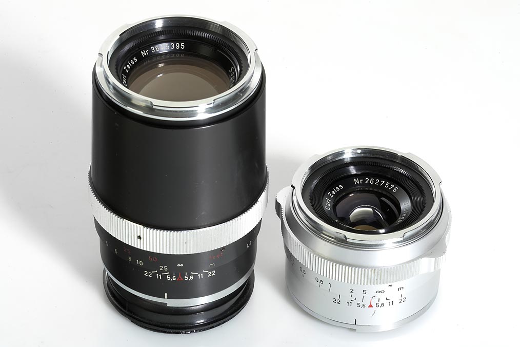a very nice outfit incl. body in perfect working order with prism finder and waist level finder, chrome Tessar 2.8/50mm no.3293259 (cap, hood), chrome Distagon 4/35mm no.2627576 (hood), black Sonnar 4/135mm no.3645395 (hood, cap), two spare interchangeable backs
