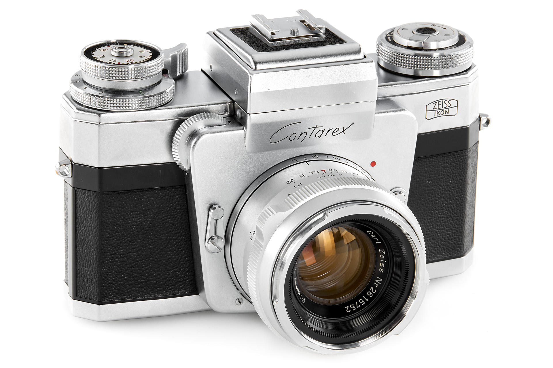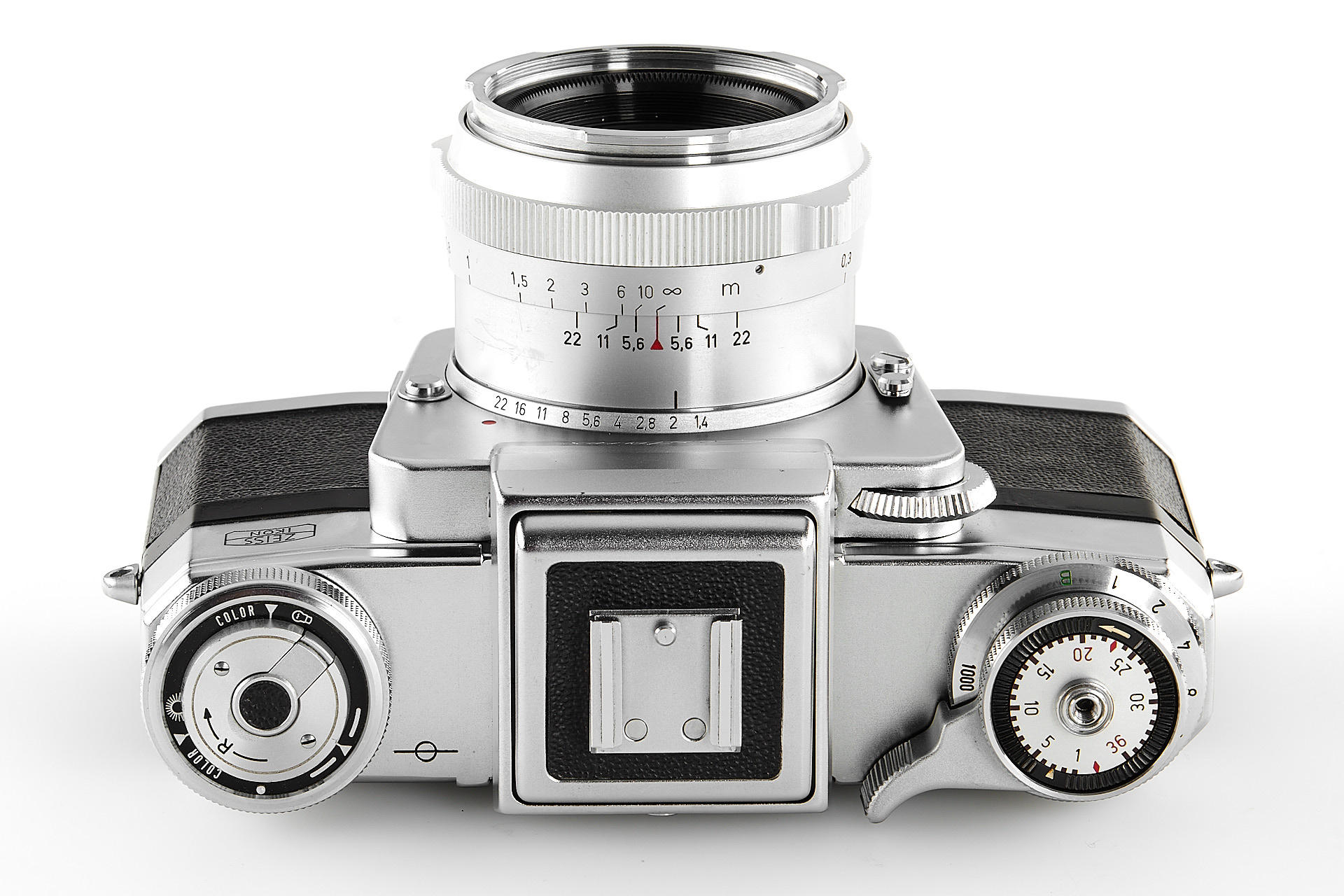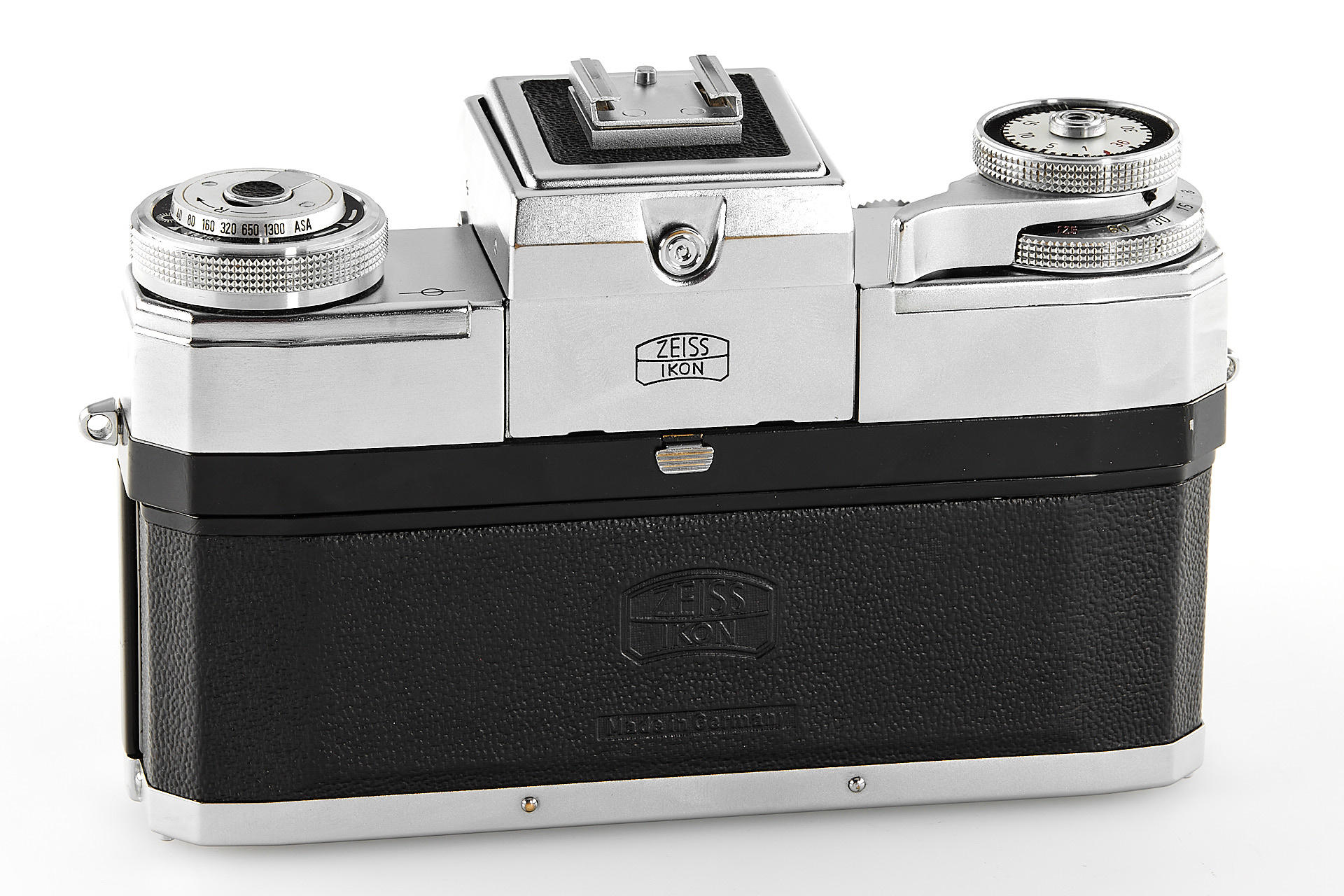 Rare body in near mint condition, with waist-level viewfinder, Eye-level viewfinder, spare focusing screen in its leather case, with clean chrome Planar 2/50mm no.2615752 and original front lens cap