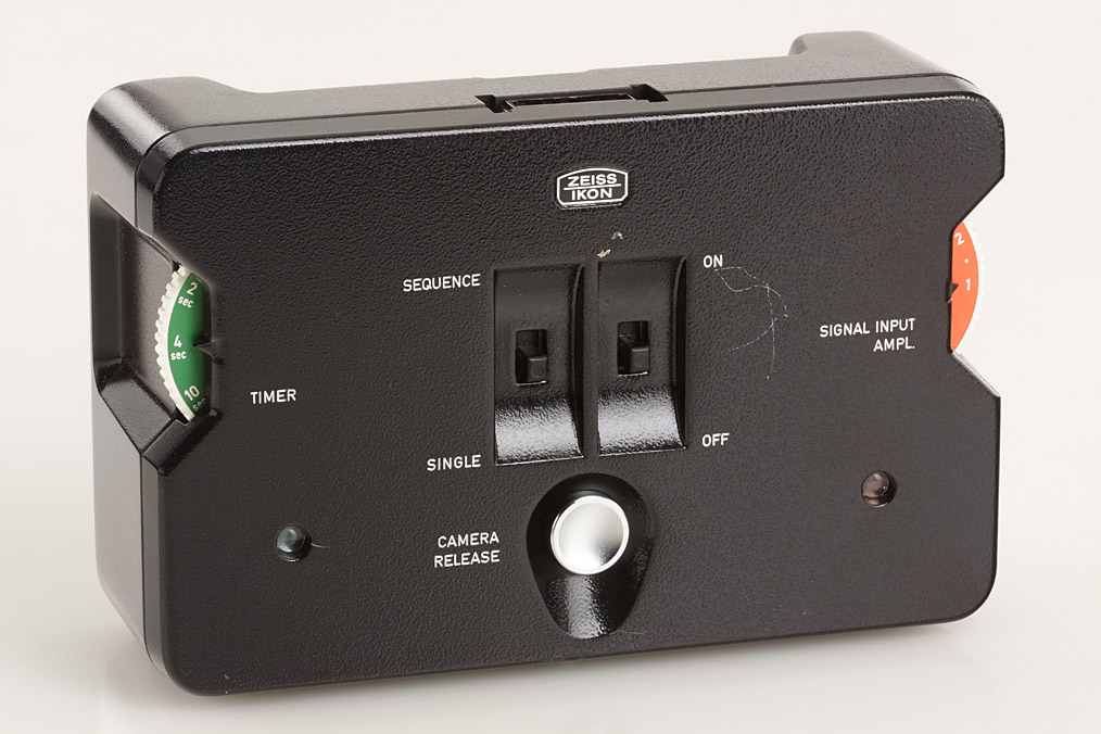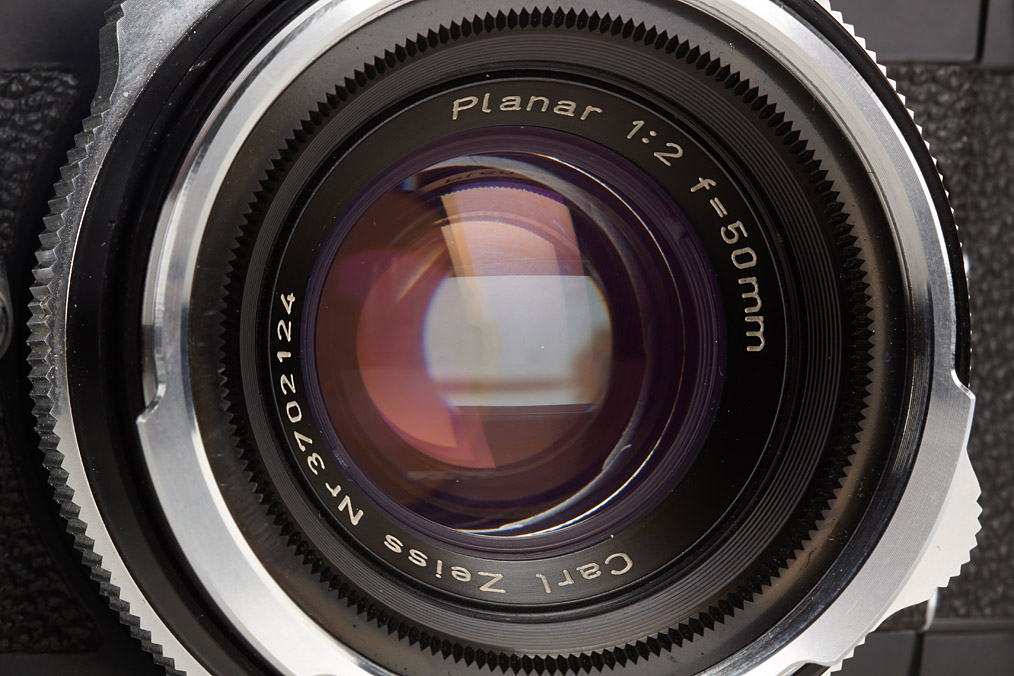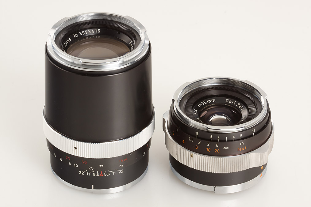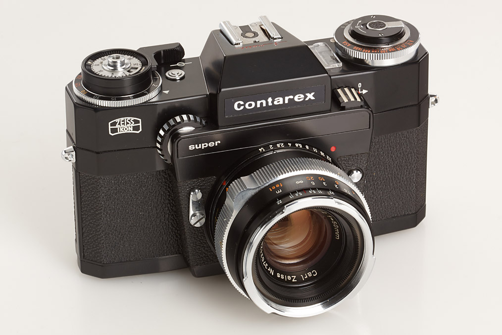 rare Super in black paint finish (first type) in mint condition and good working order (exposure meter not accurate) with black Planar 2/50mm no.3702124 (clean lenses, cap), everready case, black Distagon 4/35mm no.3703402 (clean lenses, cap, keeper), black Sonnar 4/135mm no.3993416 (clean lenses, cap), black 50-135 hood - with Contarex SE motor drive with grip, telesensor and remote control with grip (not operable)