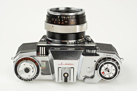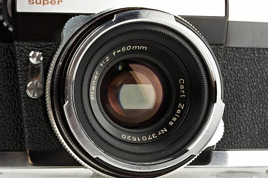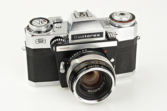 1st version (condition A/B), light meter not working, with black Blitz-Planar 2/50mm no.3701520 (condition B+), black Distagon 2/35mm no.4127891 (condition B+), cap, black Sonnar 2.8/135mm no.4219278 (condition B+), cap, plastic lens keeper, black ever-ready case, all lenses with clean lenses, with H.Freytag "Das Contarex Buch"