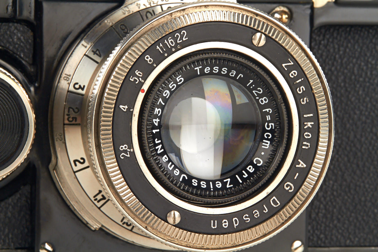 body in beautiful condition, working shutter, with collapsible nickel Tessar 2.8/5cm no.1437955