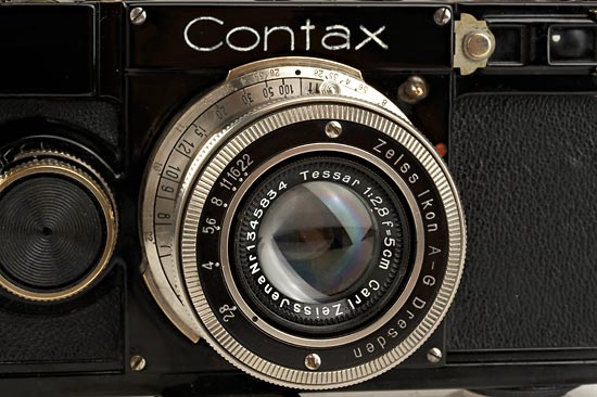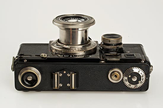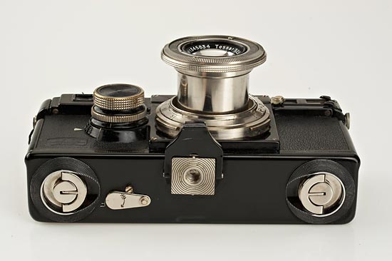 in excellent original condition, shutter works, back with same number, Tessar 2.8/5cm no.1345834, cap, case