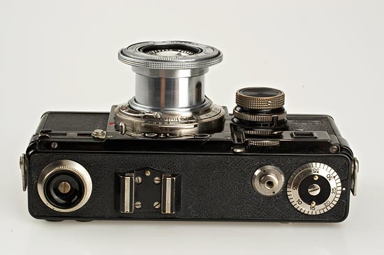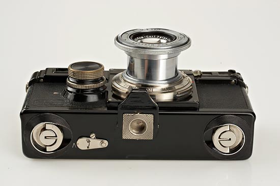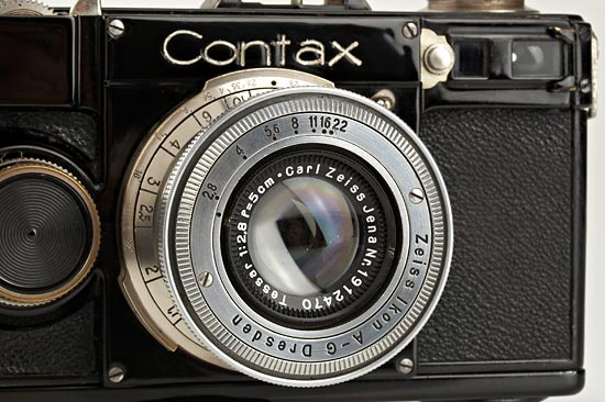 one of the last Contax I cameras (production ended with number A 21000) in excellent original condition, shutter works, back with same number, chrome Tessar 2.8/5cm no.1912470 (condition A-), case