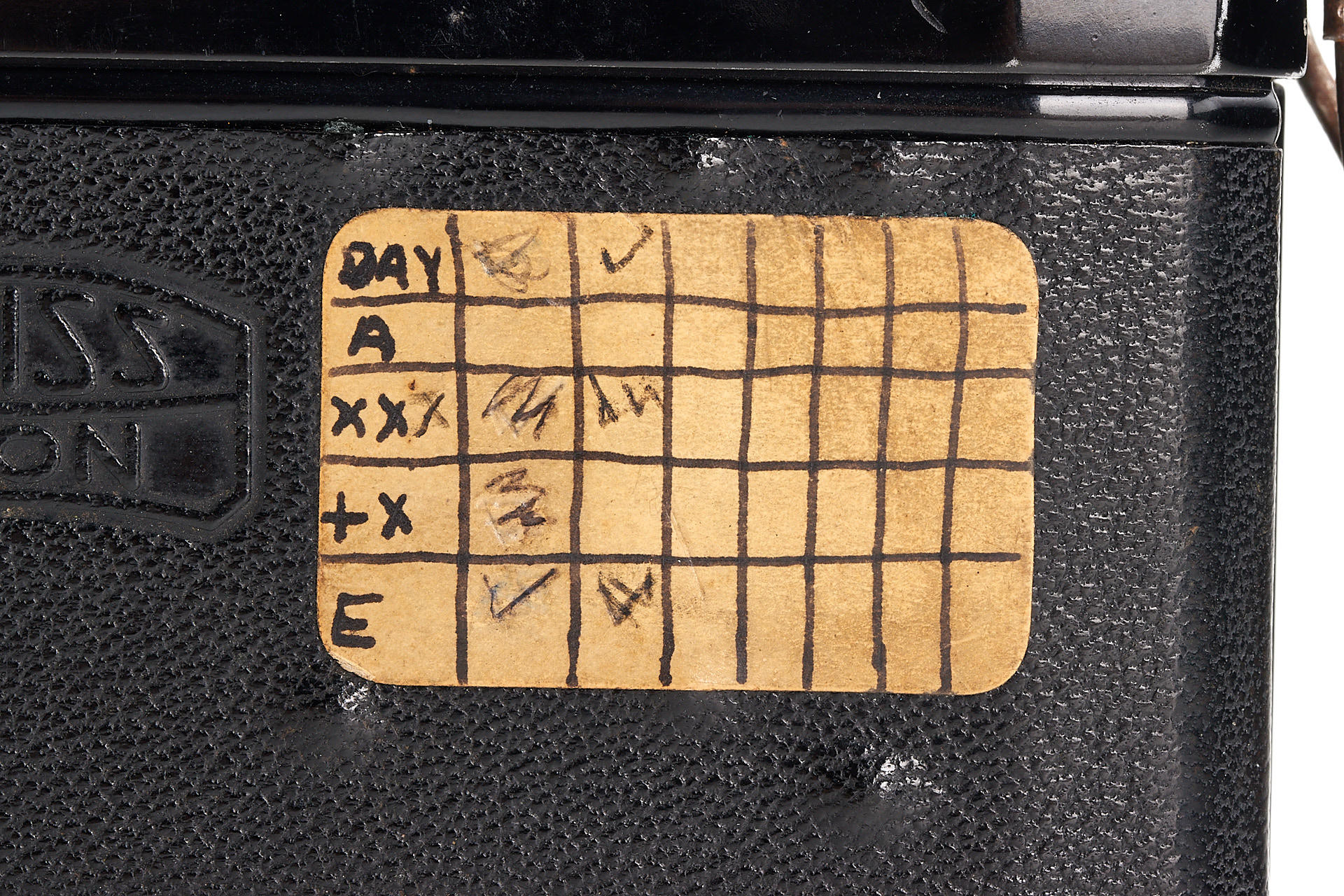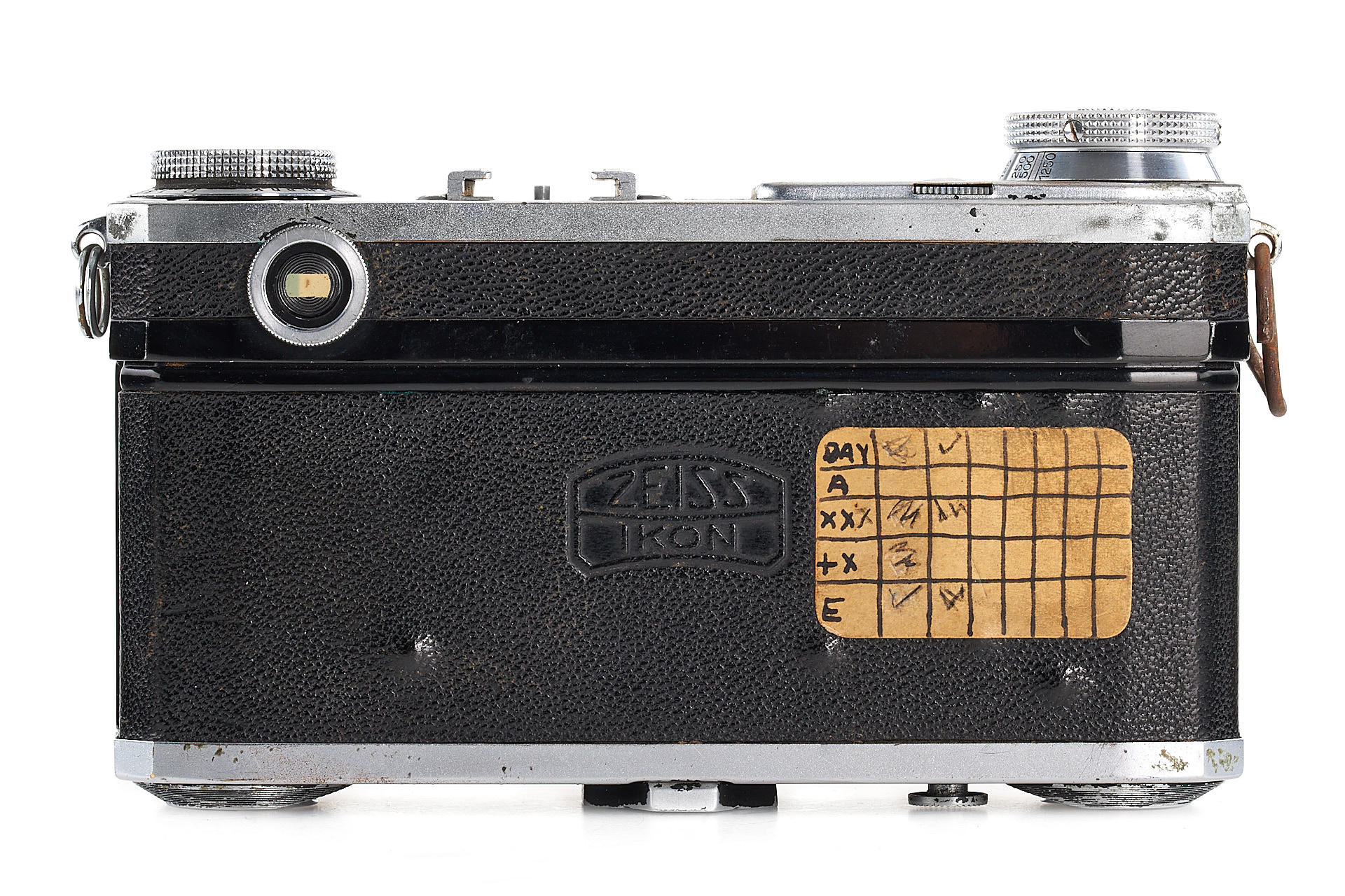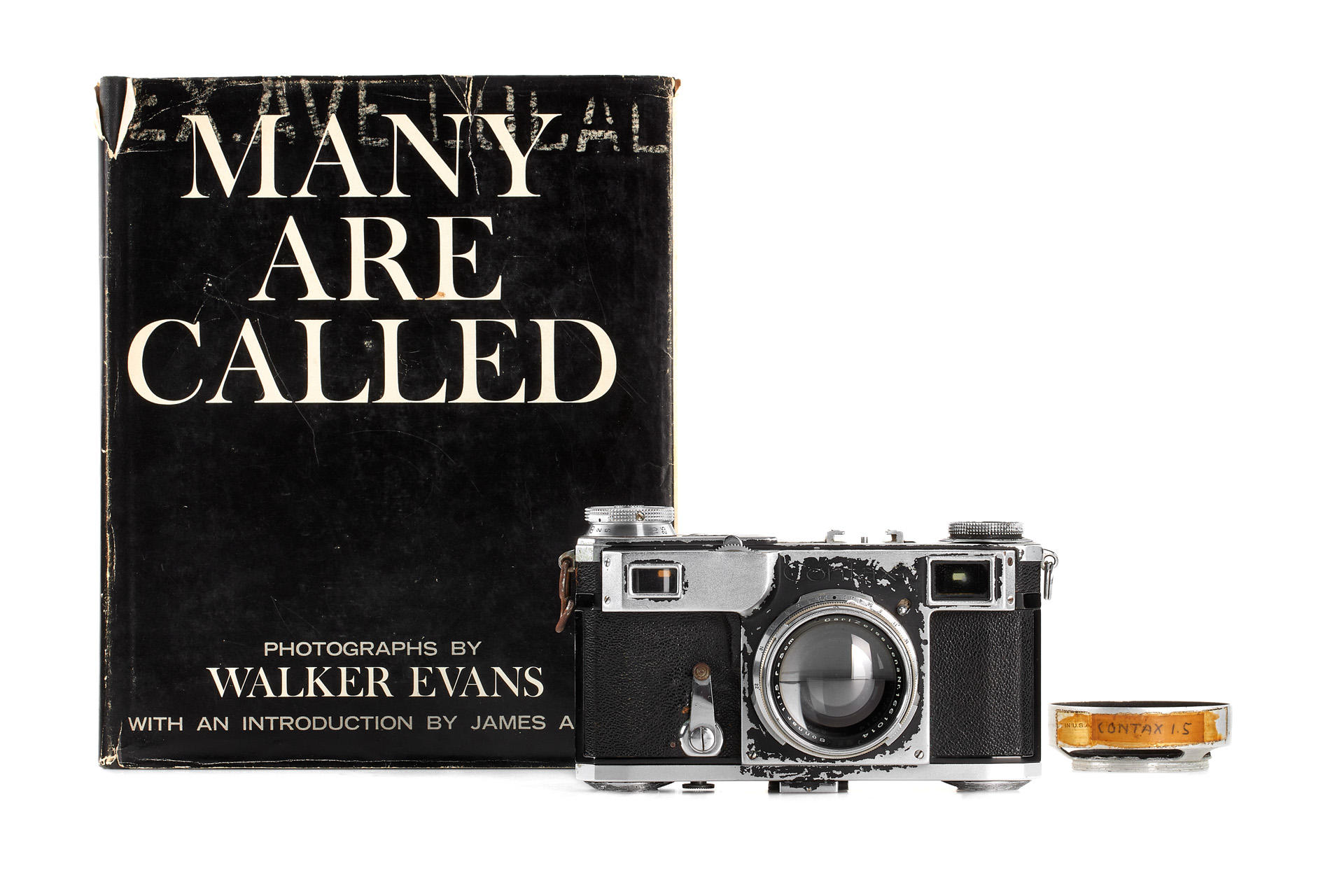Between 1938 and 1941 Evans produced a series of portraits in the New York City subways. The camera of his choice was a Contax II with a Sonnar 1.5/5cm lens. It was strapped to his chest, with the lens peeking out between two buttons of his winter coat. Evans painted the chrome elements of the camera black to make it more inconspicuous and used a cable release hidden in his sleeve to trigger the shutter. With this setup he succeeded in accomplishing a difficult challenge in making truly unposed portraits and reached an unseen level of reality and intimacy characteristic to this remarkable series of photographs. The camera we have the pleasure to offer was displayed during several photo exhibitions in the U.S. This may be the most famous and distinctive camera used by the photographer. Included in this lot is also a book by Evans 'Many are Called' (first edition 1966, hardcover), including photographs made with this Contax II. Walker Evans (1903-1975) was an American photographer and photojournalist. He is widely acknowledged as one of the most important photographers of the twentieth century and worked primarily in the US. His enormous artistic influence has been recognized not only there, but also internationally. He is best known for his work for the Farm Security Administration (FSA) documenting the effects of the Great Depression on the rural population in the Mid 1930s. The portraits of the three families Fields, Borroughs and Tingle became icons of photography history. After 1945, Evans photographed, among others, American urban landscapes and industrial buildings for magazines like Harper’s Bazaar, Vogue, Architectural Forum, Life and Fortune. Because of his documentary style, he is considered the forerunner of the German photographer couple Bernd and Hilla Becher. In 1938 the MoMa organized the first exhibition for a single photographer for Walker Evans: American Photographs. Since then, many of his works are in permanent collections of museums or have been the subject of retrospectives at institutions such as the Metropolitan Museum of Art, the George Eastman Museum, the Centre Pompidou, or, most notably at Museum of Modern Art, New York and at the J. Paul Getty Museum in California, USA.