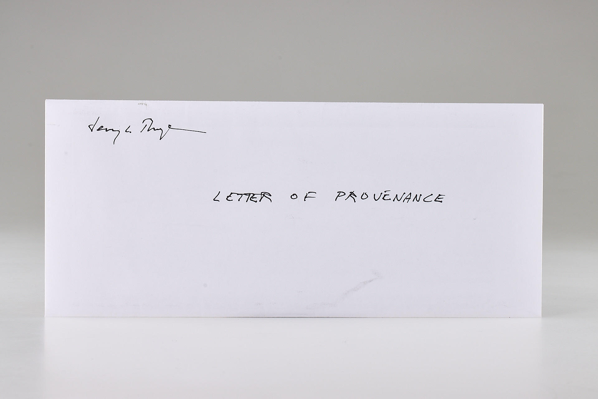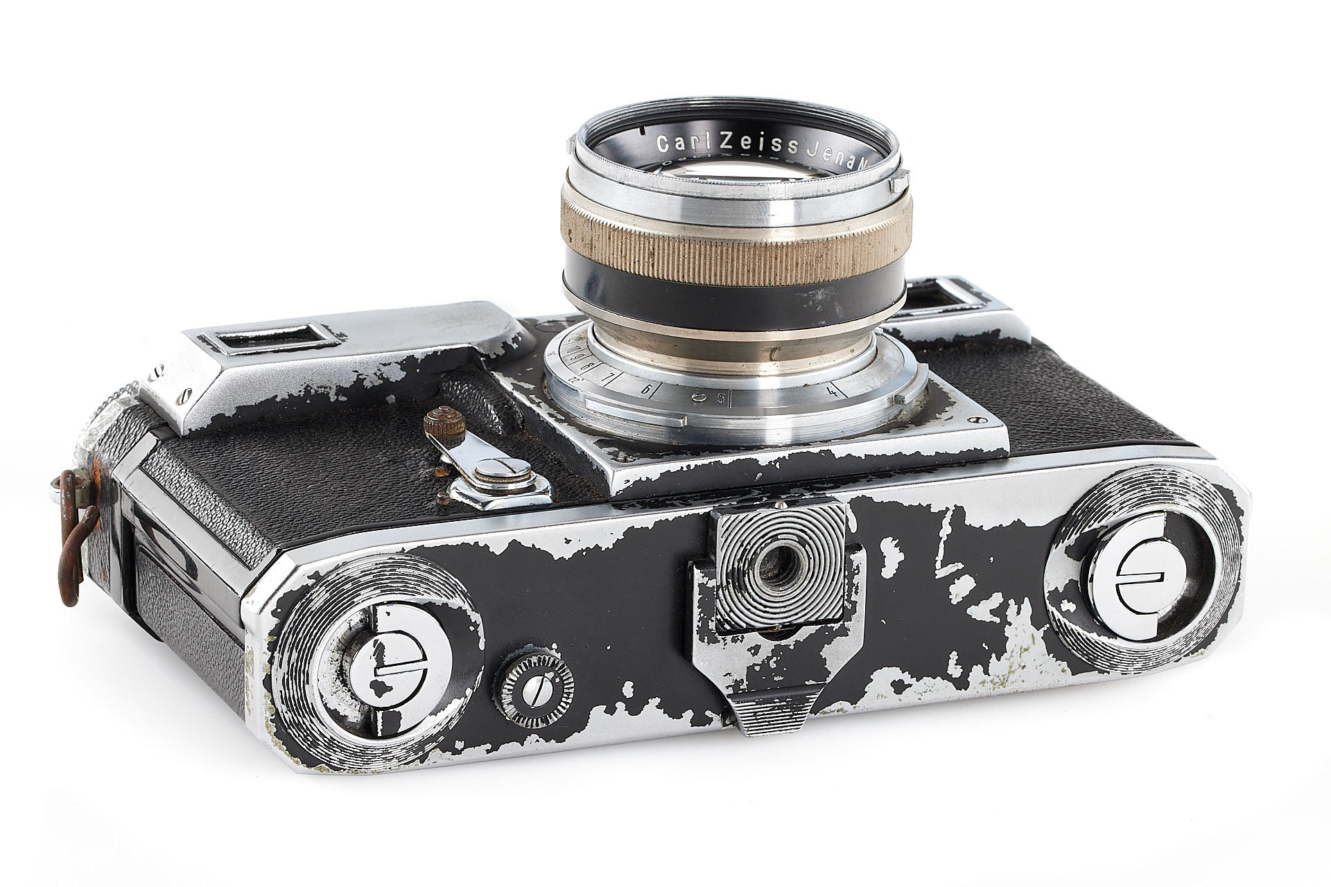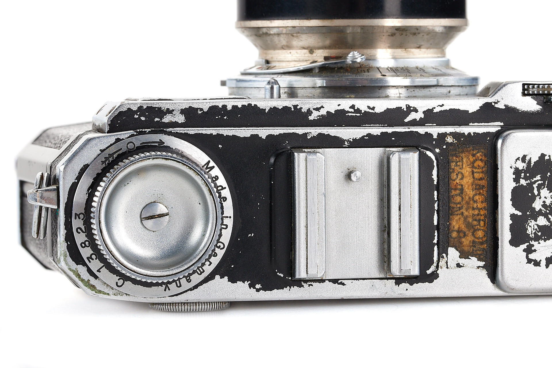 Between 1938 and 1941 Evans produced a series of portraits in the New York City subways. The camera of his choice was a Contax II with a Sonnar 1.5/5cm lens. It was strapped to his chest, with the lens peeking out between two buttons of his winter coat. Evans painted the chrome elements of the camera black to make it more inconspicuous and used a cable release hidden in his sleeve to trigger the shutter. With this setup he succeeded in accomplishing a difficult challenge in making truly unposed portraits and reached an unseen level of reality and intimacy characteristic to this remarkable series of photographs. The camera we have the pleasure to offer was displayed during several photo exhibitions in the U.S. This may be the most famous and distinctive camera used by the photographer. Included in this lot is also a book by Evans 'Many are Called' (first edition 1966, hardcover), including photographs made with this Contax II. Walker Evans (1903-1975) was an American photographer and photojournalist. He is widely acknowledged as one of the most important photographers of the twentieth century and worked primarily in the US. His enormous artistic influence has been recognized not only there, but also internationally. He is best known for his work for the Farm Security Administration (FSA) documenting the effects of the Great Depression on the rural population in the Mid 1930s. The portraits of the three families Fields, Borroughs and Tingle became icons of photography history. After 1945, Evans photographed, among others, American urban landscapes and industrial buildings for magazines like Harper’s Bazaar, Vogue, Architectural Forum, Life and Fortune. Because of his documentary style, he is considered the forerunner of the German photographer couple Bernd and Hilla Becher. In 1938 the MoMa organized the first exhibition for a single photographer for Walker Evans: American Photographs. Since then, many of his works are in permanent collections of museums or have been the subject of retrospectives at institutions such as the Metropolitan Museum of Art, the George Eastman Museum, the Centre Pompidou, or, most notably at Museum of Modern Art, New York and at the J. Paul Getty Museum in California, USA.