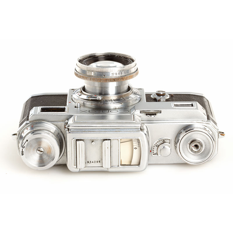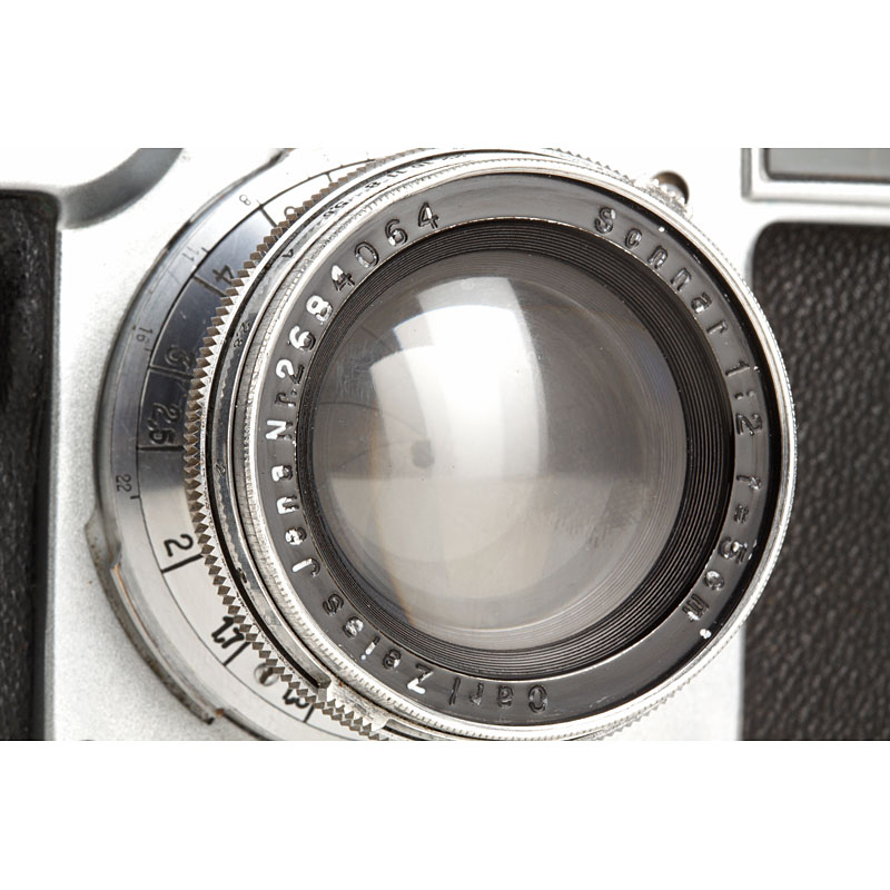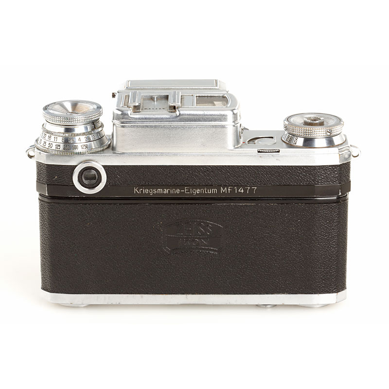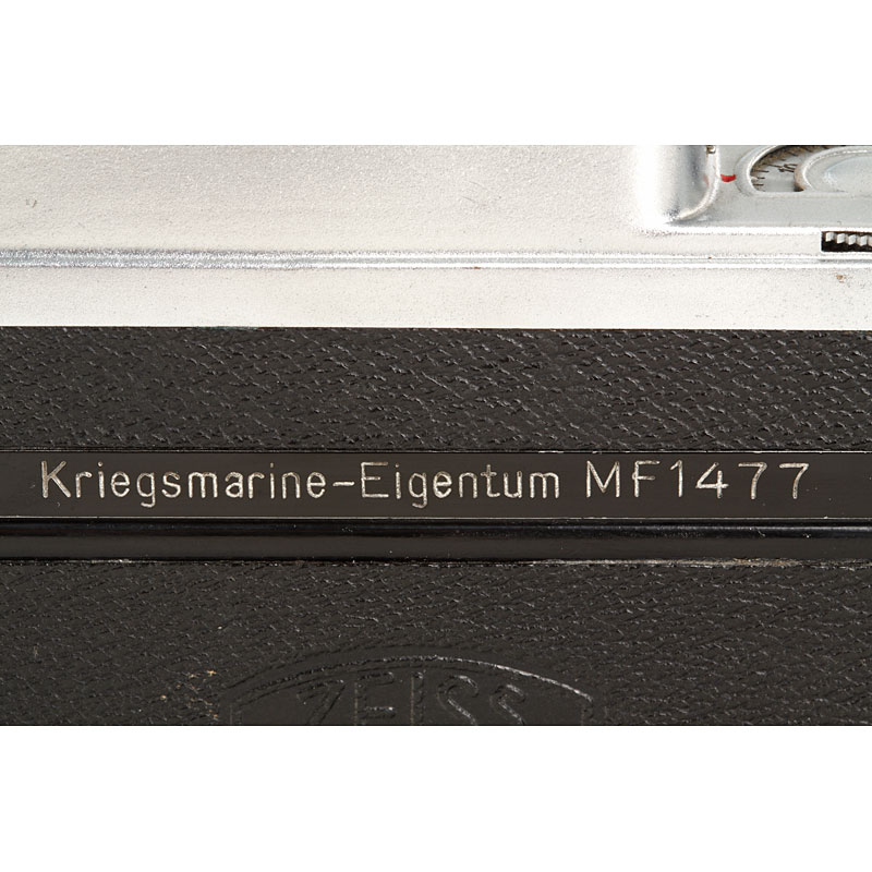 100% authentic, military Contax III with 'Kriegsmarine-Eigentum MF1477' engraved on back of top plate, Sonnar 2/5cm no.2684064 engraved 'MF1427', everready case