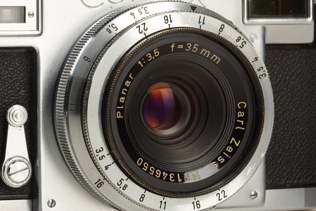 with Planar 3.5/35mm no.1346550 (clean lenses), 427 universal finder (cond. B/A, case), hood 1115 (case), everready case